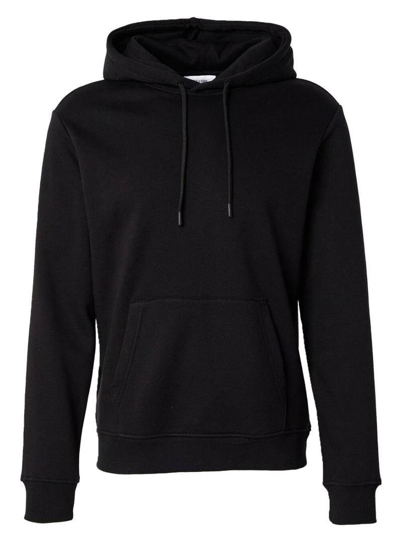 Moletom Only and Sons. Modelo Chase. Cor preta. Capuz ajustável com cordão. Manga longa. Formato regular. Bolso canguru. Acabamentos canelados. O modelo está usando o tamanho M.