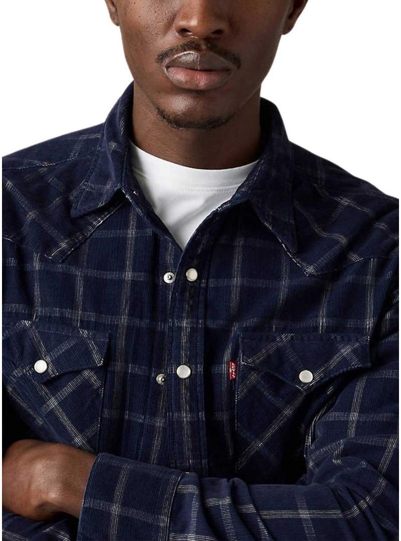 Camisa Levis. Modelo Barstow Western. Cor azul marinho. Estampado xadrez. Fechamento frontal com botões. Bolsos com aba no peito. Formato regular. Etiqueta da marca no peito. Gola de camisa. Costuras estilo western. Manga comprida. Tecido de veludo cotelê.