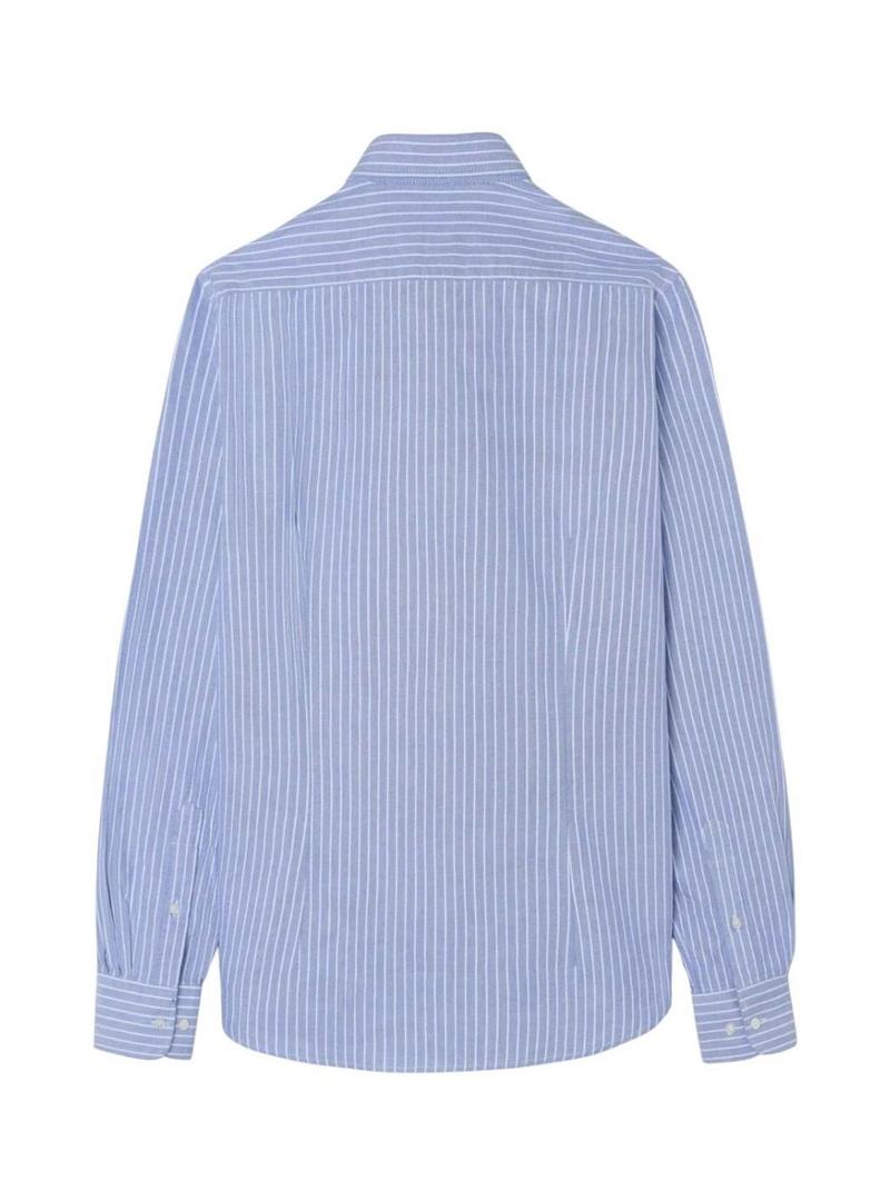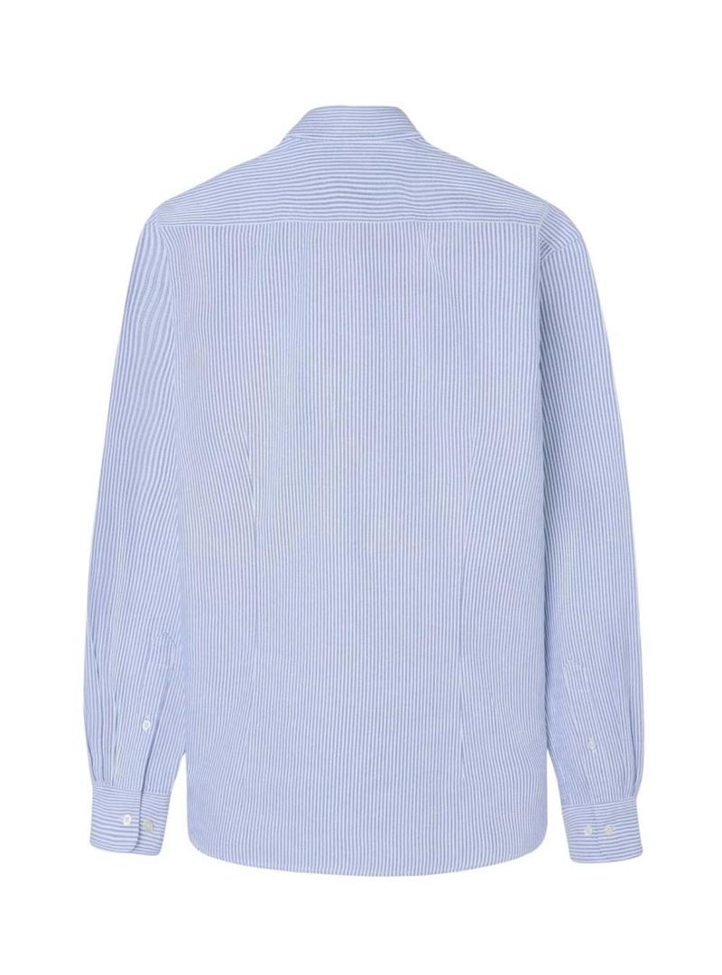Camisa Silbon. Modelo esporte oxford. Estampado de riscas. cor azul. Gola com botões. Fecho frontal com botões personalizado. Manga comprida. Raquetes bordadas no peito.