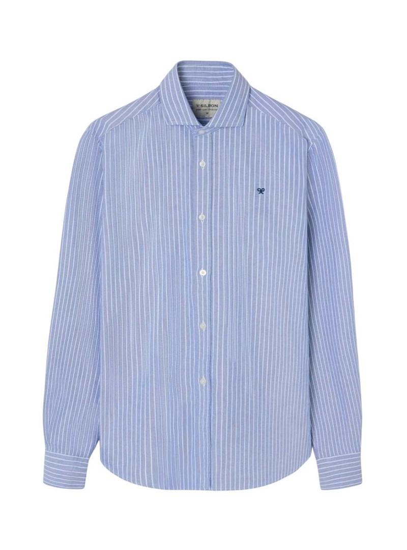 Camisa Silbon esporte oxford raquete listrada azul para homem.