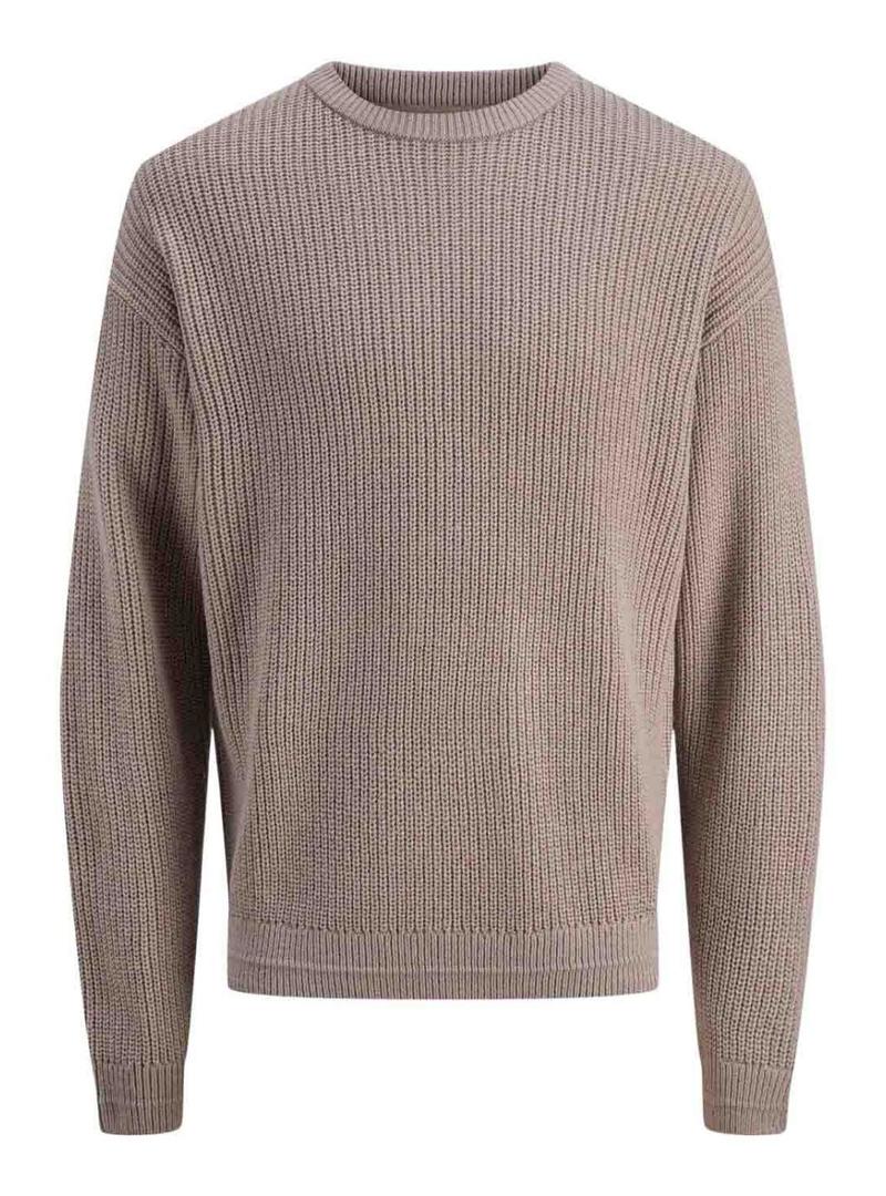 Camisola Jack and Jones. Modelo Kaito. Cor bege. Gola redonda. Ajuste folgado. Extremidades caneladas. Malha média. Etiqueta lateral da marca. Estilo básico.