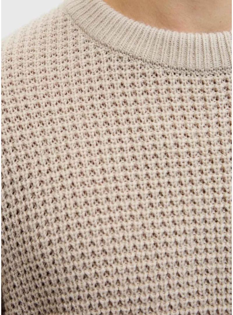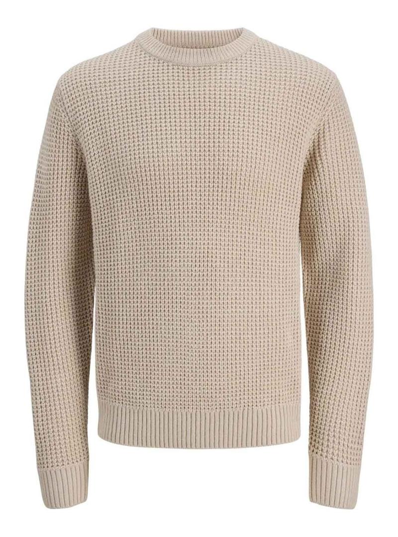 Camisola Jack and Jones. Modelo Global. Cor bege. Ajuste regular. Gola redonda. Estilo básico. Extremidades caneladas. Tecido com textura em relevo.