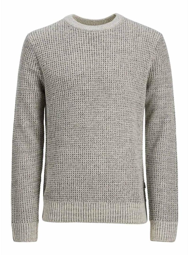Camisola Jack and Jones. Modelo Global. Cor cinza. Ajuste regular. Gola redonda. Estilo básico. Extremidades caneladas. Tecido com textura em relevo.