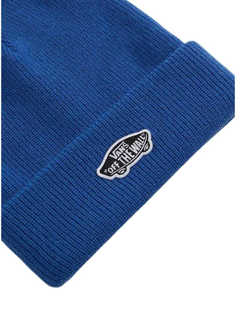 Touca Vans. Modelo Classic Cuff. Cor azul. Tecido de malha canelada. Borda com dobra. Patch da marca bordado.