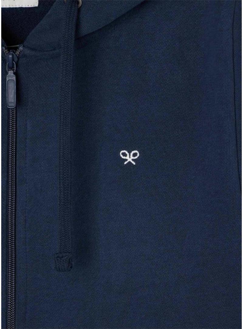 Moletom Silbon. Cor marinho. Formato regular. Com capuz. Manga comprida. Fecho com zíper. Bolsos frontais. Logotipo de raquetes bordado no peito.