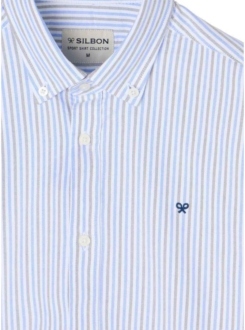 Camisa Silbon esporte oxford listrada azul e verde para homem