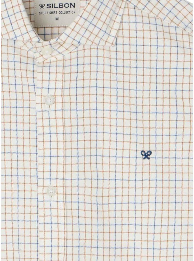 Camisa Silbon sport xadrez bicolor azul e mostarda para homens.