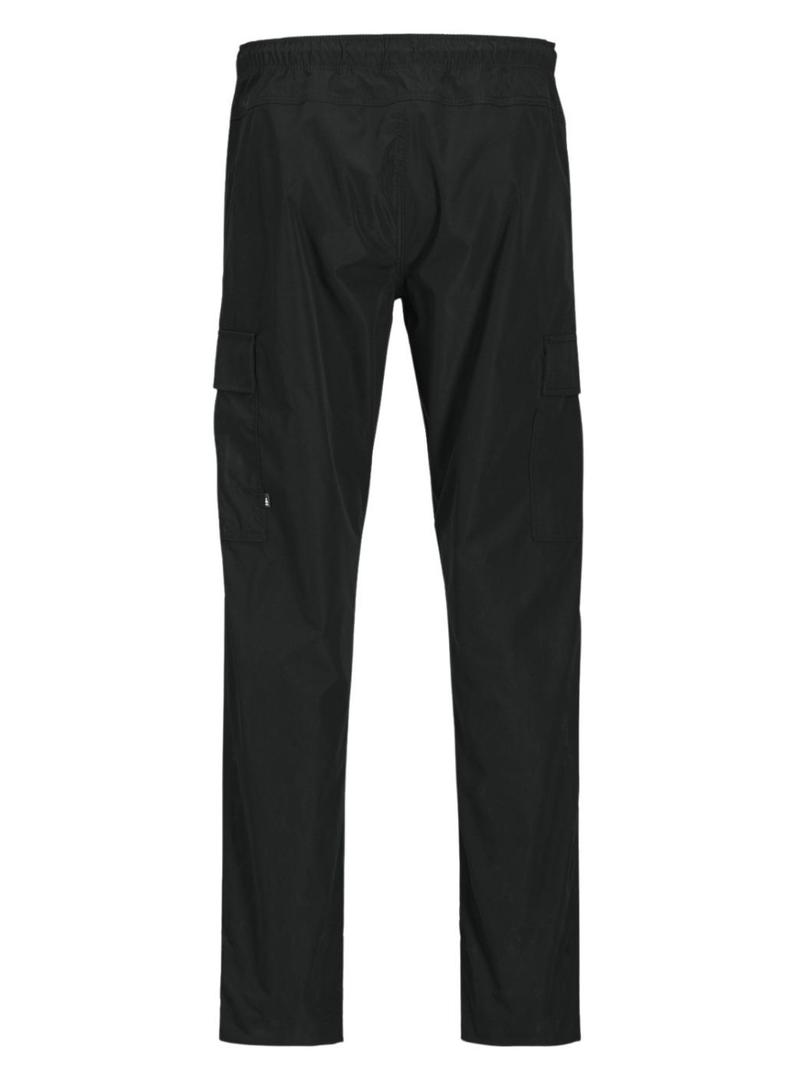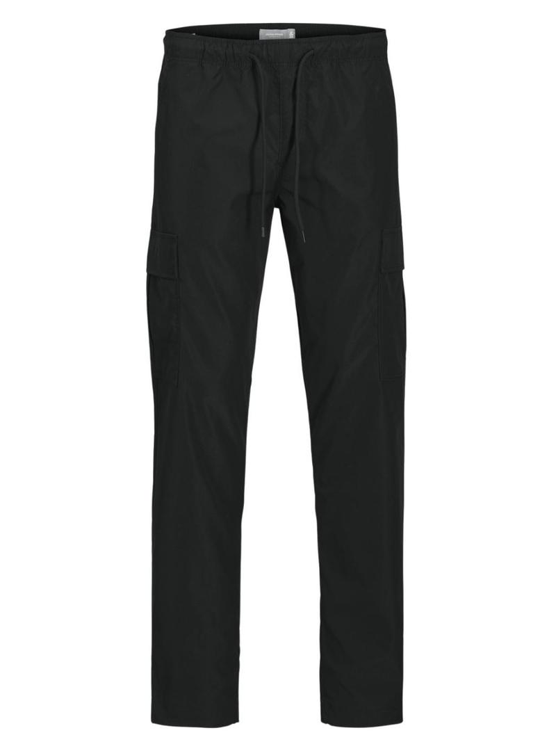 Calça Jack and Jones. Modelo Kane. Cor preta. Fecho com botão e zíper. Bolsos laterais com aba. Corte reto. Ajuste slim. Estilo cargo.