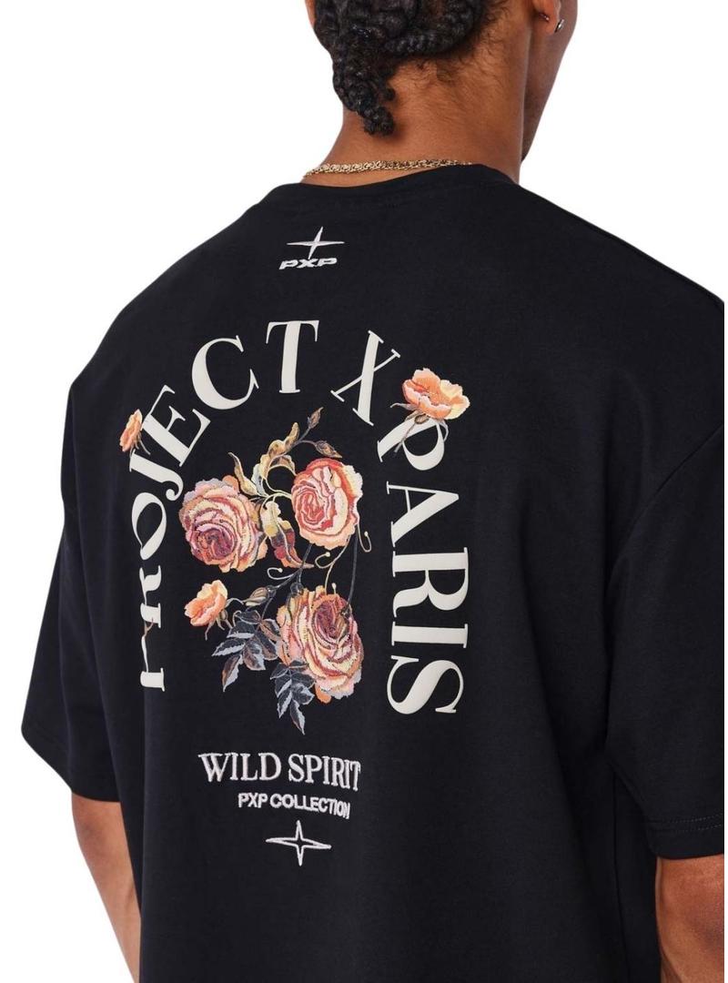 Camiseta Project x Paris. Modelo Roses. Cor preto. Gola redonda. Manga curta. Ajuste folgado. Logo estampado no peito com rosas. Ilustração nas costas.