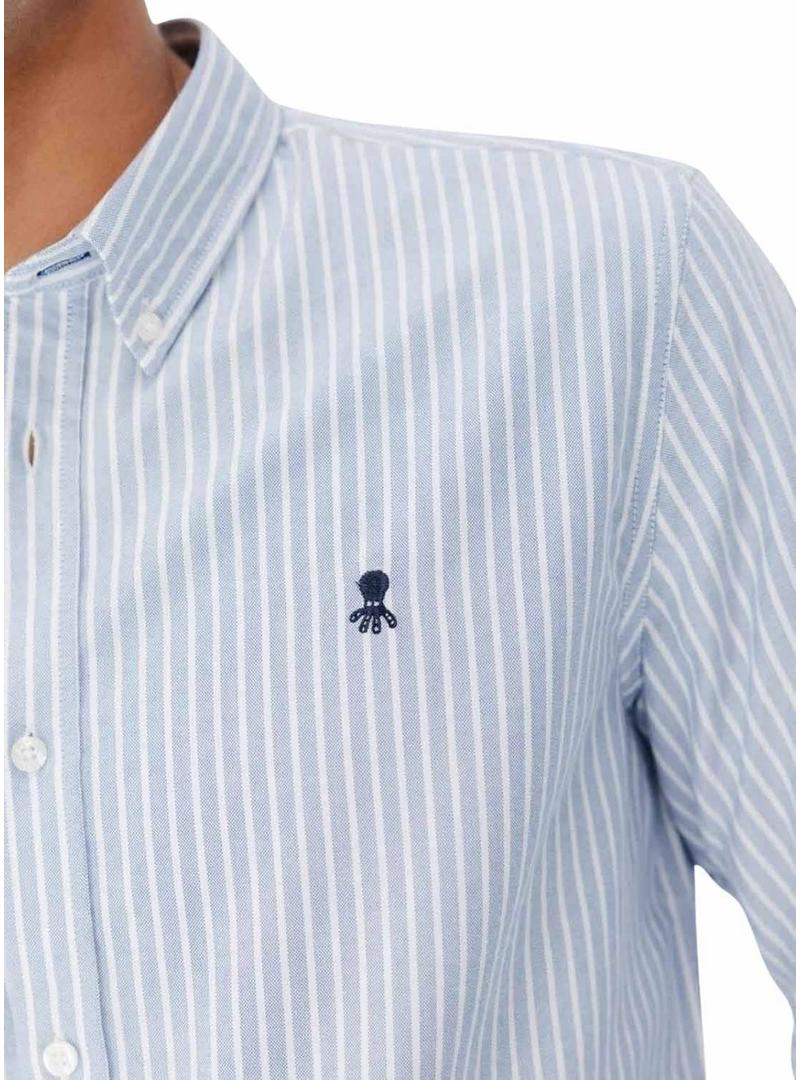 Camisa El Pulpo Casual Oxford listrada azul para homens