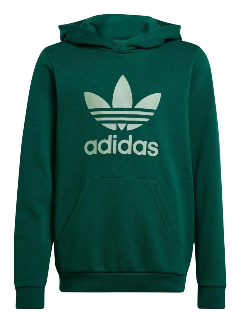 Moletom Adidas. Modelo Trefoil. Cor verde. Manga longa. Com capuz. Logo da marca no peito. Bolso canguru.