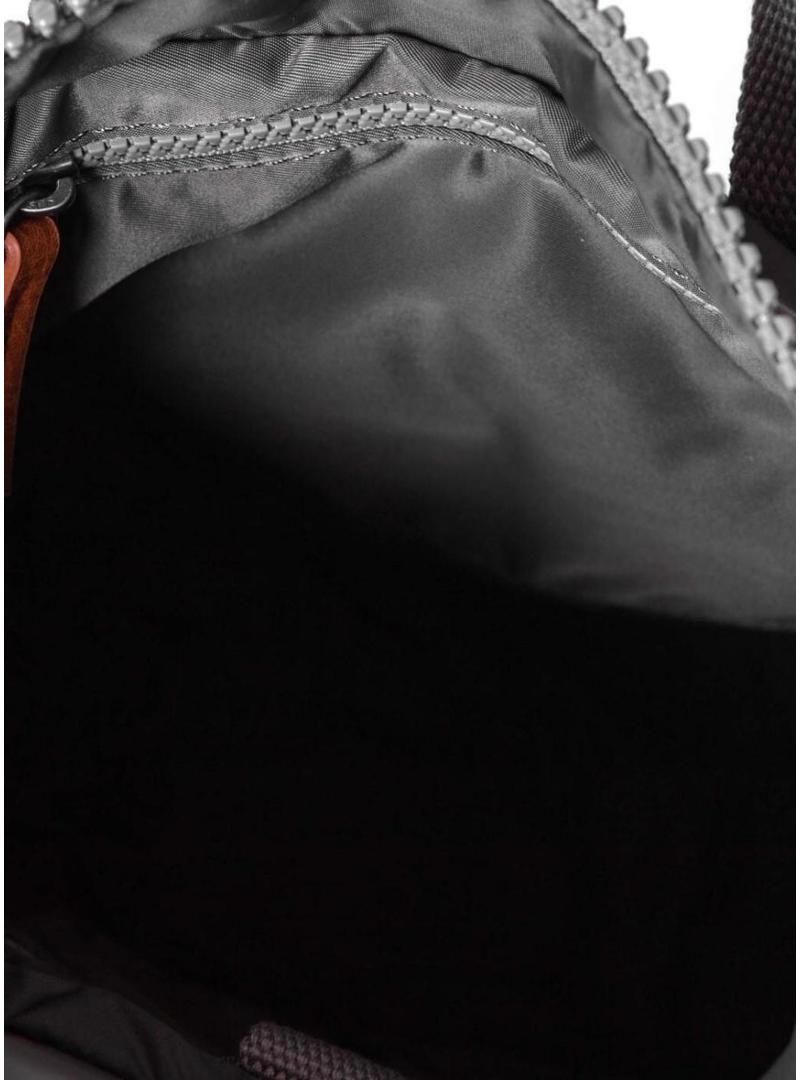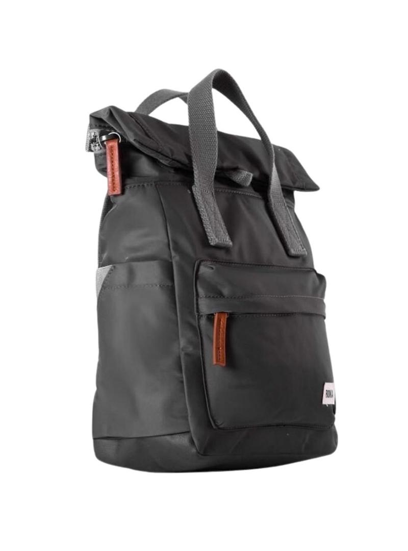 Mochila Roka. Modelo Canfield. Cor cinza. Fecho enrolável. Tamanho pequeno. Abertura ampla. Zíper grosso. Suportes magnéticos. Puxadores de zíper em cor contrastante. Possui um bolso secreto externo com fecho de zíper. Bolsos internos. Material exterior: Lona reciclada resistente às intempéries. Bolsos laterais para garrafas. Alças de ombro ajustáveis, conforto V-Factor. Alças largas de algodão. Tamanho: 33 cm x 23,5 cm x 9,6 cm. Capacidade: 7 litros. Vegano. Ideal para guardar tablets ou laptops pequenos.