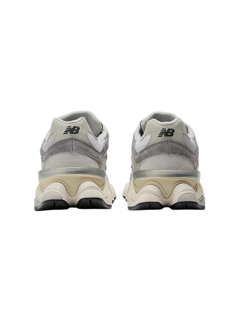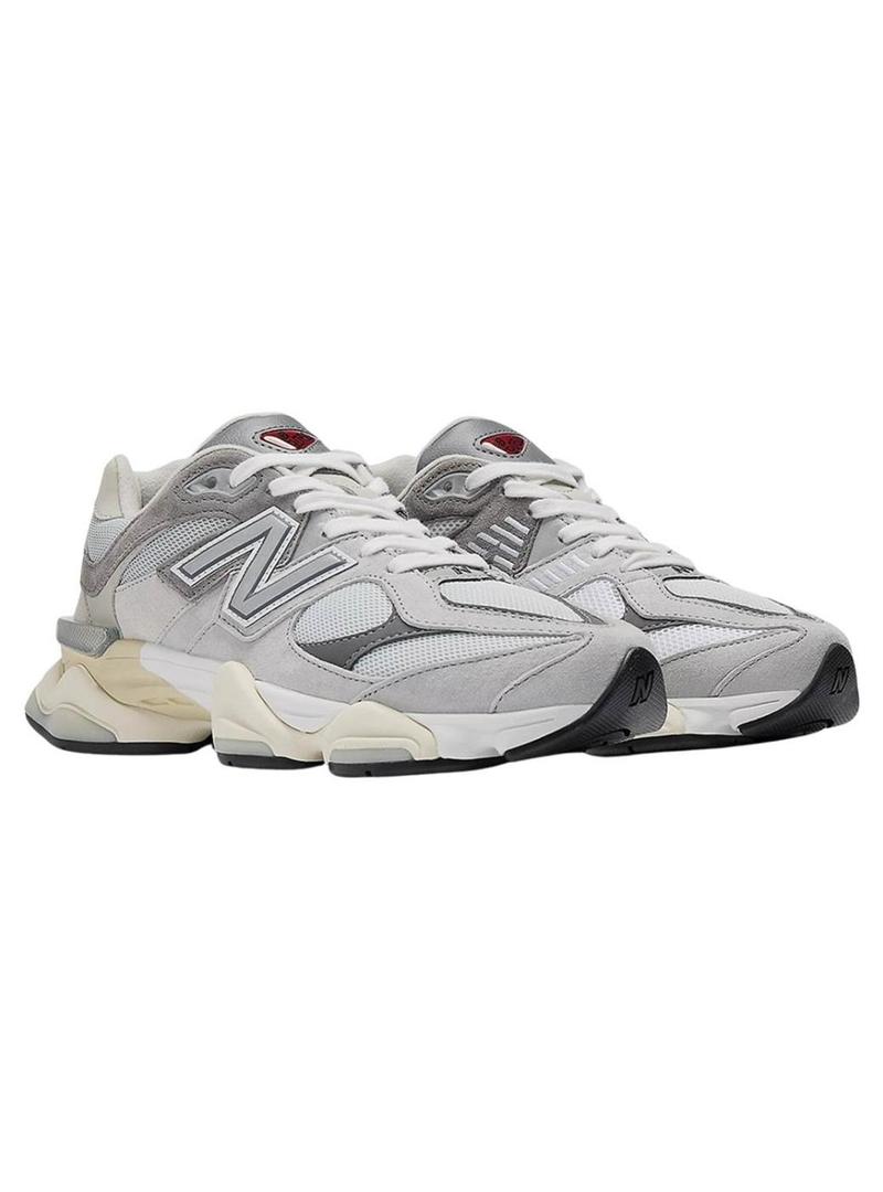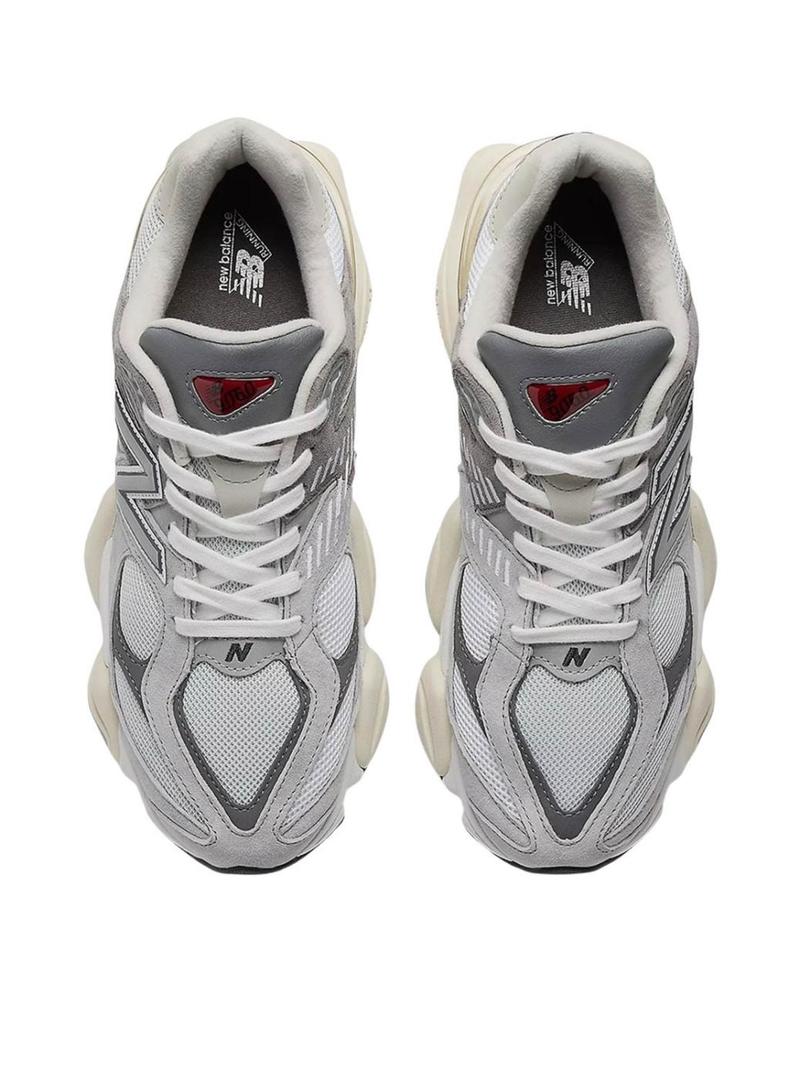 Sapatilhas New Balance. Modelo U9060. Cor branca e cinza. Estilo futurista. A entressola ABZORB absorve os impactos através de uma combinação de amortecimento e resistência à compressão. Entressola de dupla densidade com amortecimento ABZORB e SBS. Logotipo de TPU na língua. Contraforte translúcido no calcanhar. Sola com estampado de diamantes inspirado no design do clássico 860.
