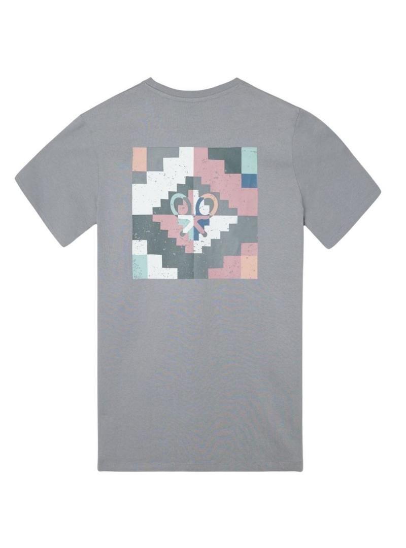 Camiseta Silbon. Estampa étnica nas costas. Cor cinza. Corte regular. Gola redonda. Manga curta. Raquetes em contraste no peito.