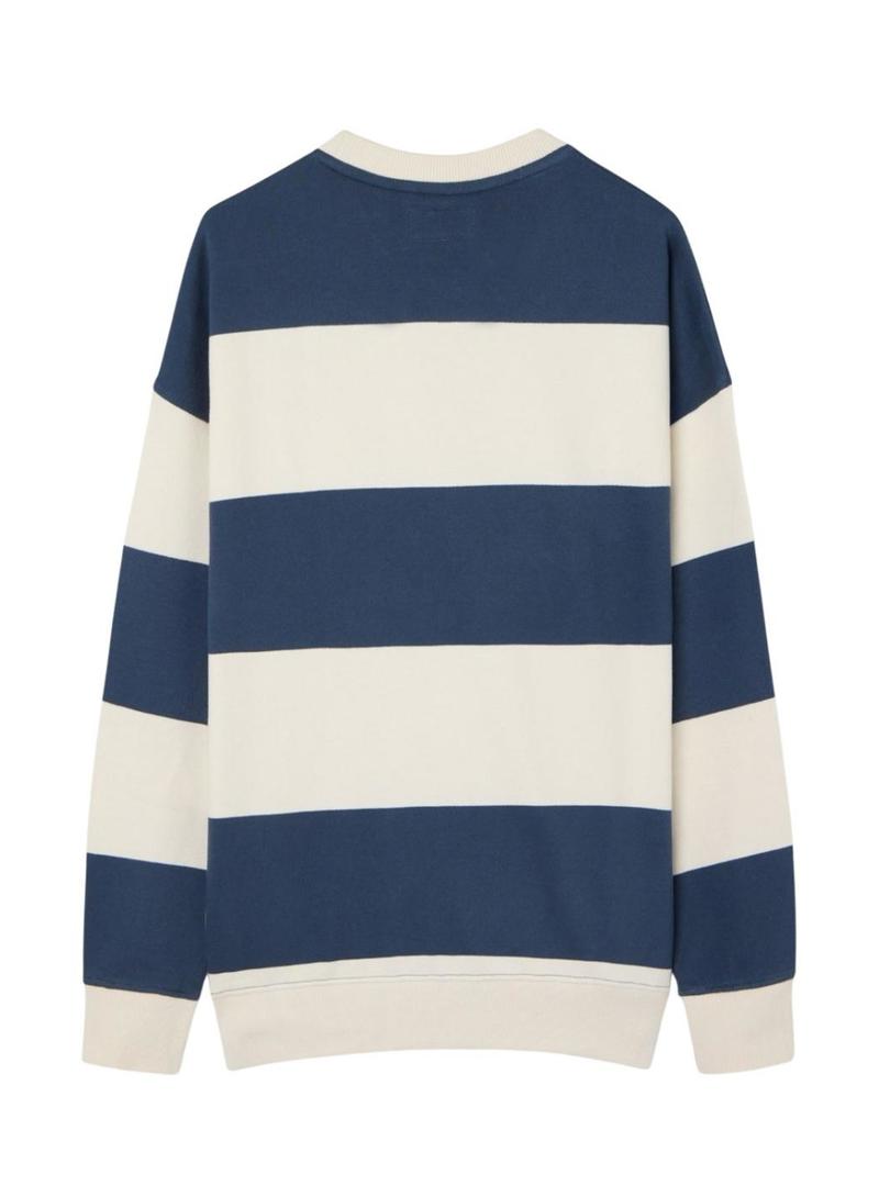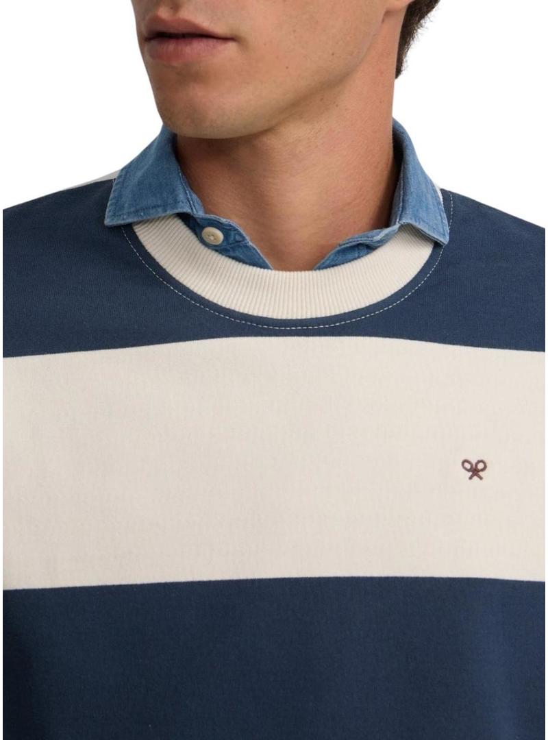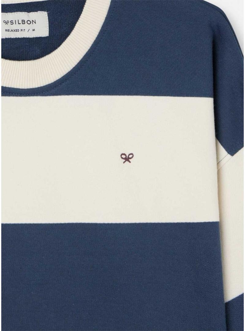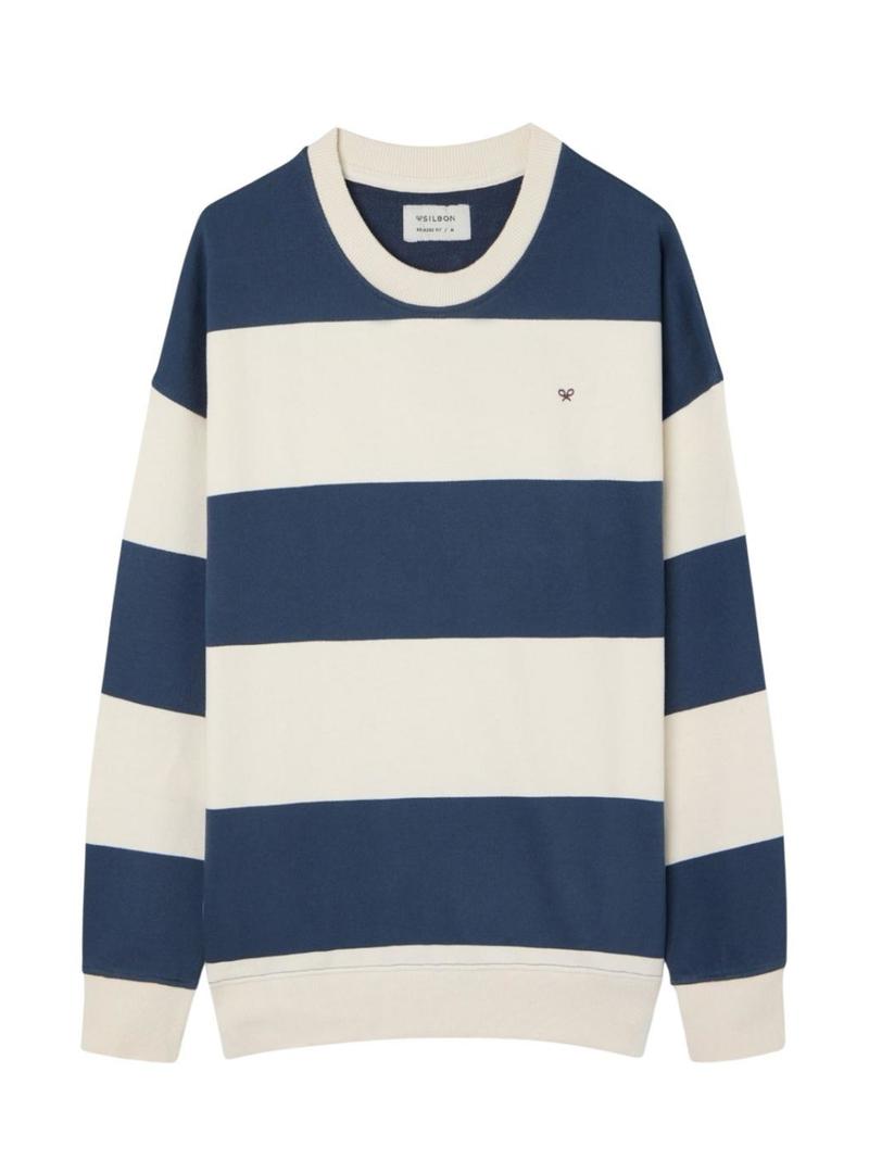 Moletom Silbon relaxado listrado creme e azul para homem.
