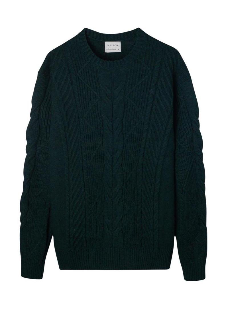 Camisola Silbon. Cor verde. Feito com uma mistura de lã. Malha de tricô trançado. Gola redonda. Manga comprida. Bordado de raquetes no peito. Acabamentos canelados. O modelo veste o tamanho M.