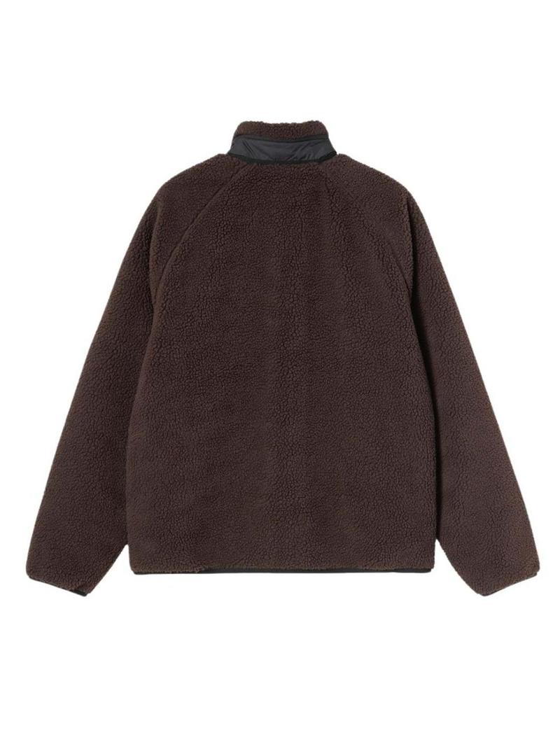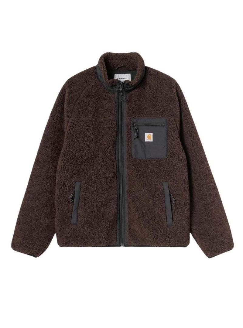 Jaqueta Carhartt. Modelo Prentis. Cor marrom. Gola alta. Fecho frontal com zíper. Tecido externo de fleece. Detalhes de nylon. Bolsos laterais com zíper. Bolso no peito com emblema da marca bordado. Formato regular. O modelo veste tamanho M.