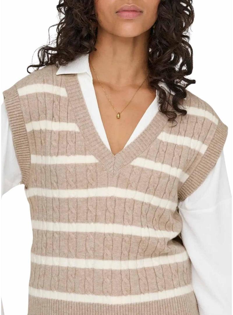 Colete Only Katia listrado em tons de tostado para mulher.