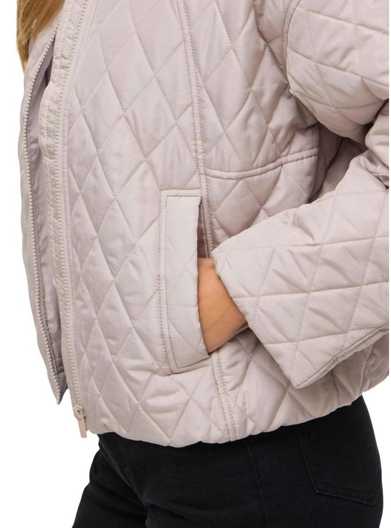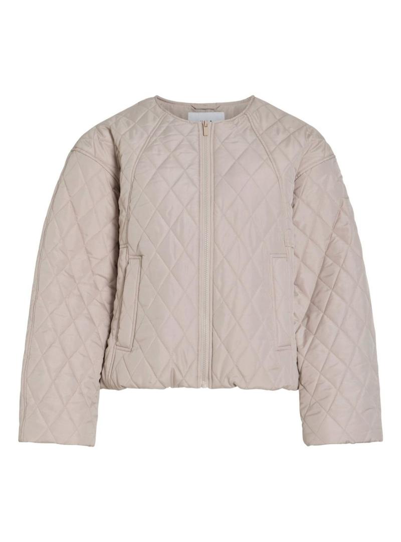 Jaqueta acolchoada Vitate. Gola redonda. Cor bege. Fecho frontal com zíper. Bolsos laterais. Enchimento leve. Padrão acolchoado de diamante. Corte regular.