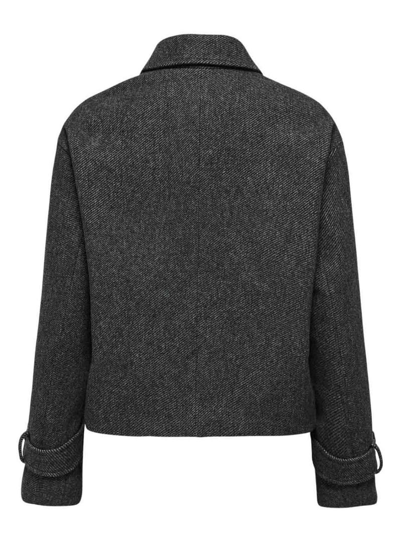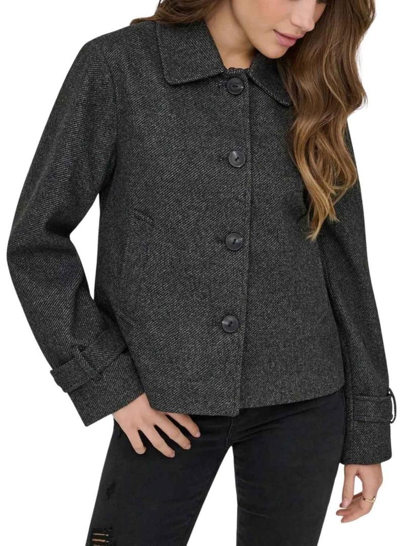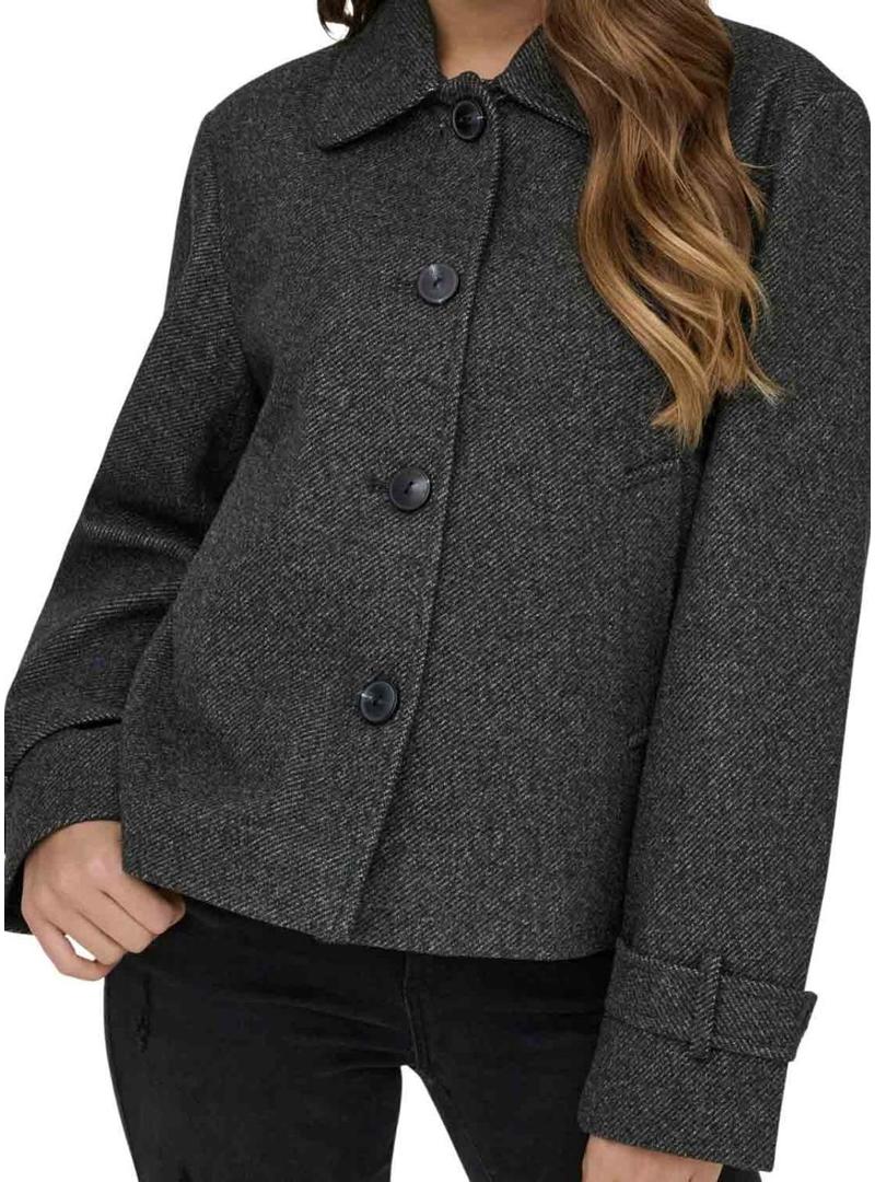 Jaqueta Only. Modelo Lasta. Cor cinza jaspeado. Fechamento com botões. Corte reto. Comprimento na altura dos quadris. Bolsos laterais. Tecido de lã.