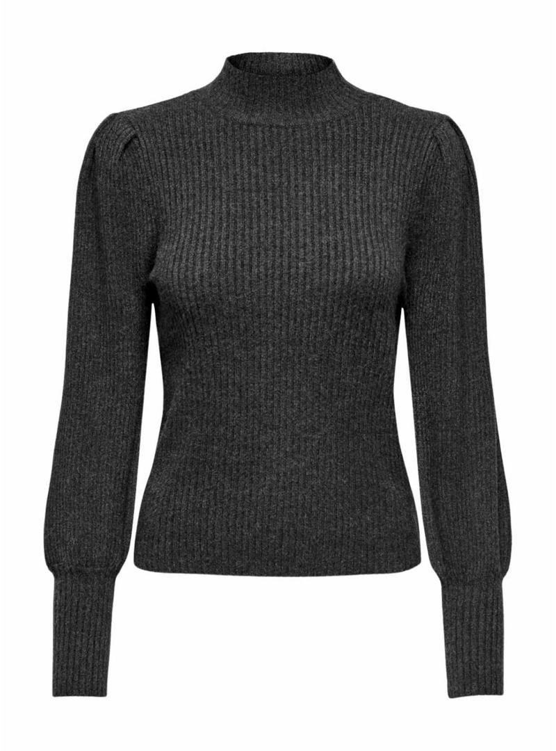 Camisola Only. Modelo Onlkatia. Cor cinza. Tecido macio. Gola alta. Mangas balão. Corte ajustado. Ombros levemente franzidos.