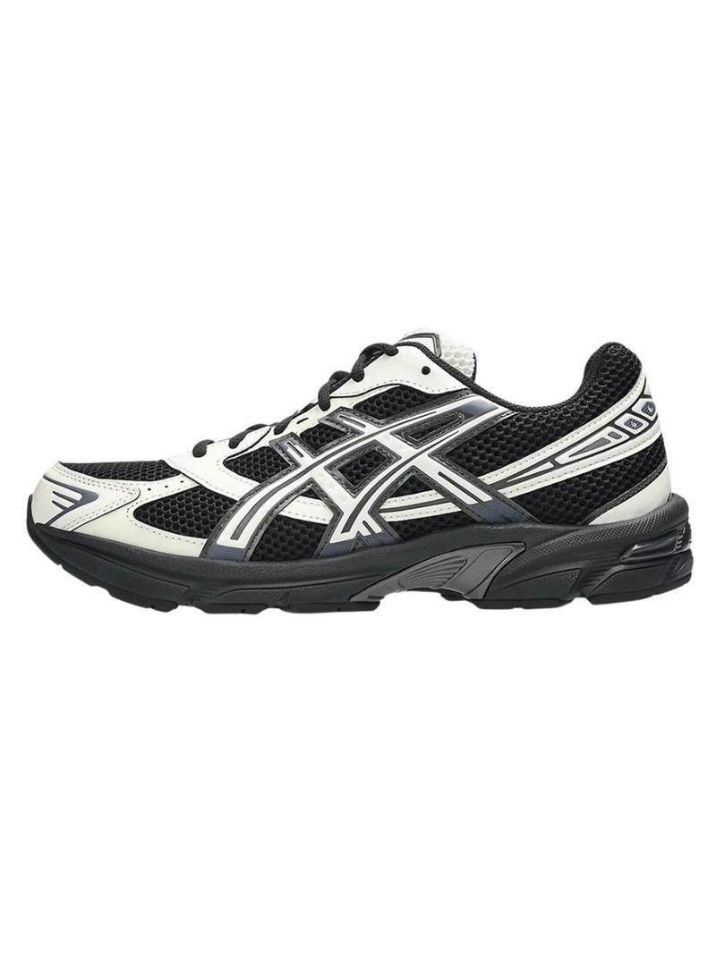 Tênis Asics. Modelo Gel 1130. Cor preta. Detalhes em branco quebrado. Parte superior em malha respirável. Estilo retrô. Fecho com cadarço. Sola de borracha antiderrapante.