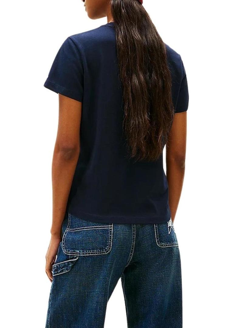 Camiseta Tommy Jeans Essential Logo azul marinho para mulher.