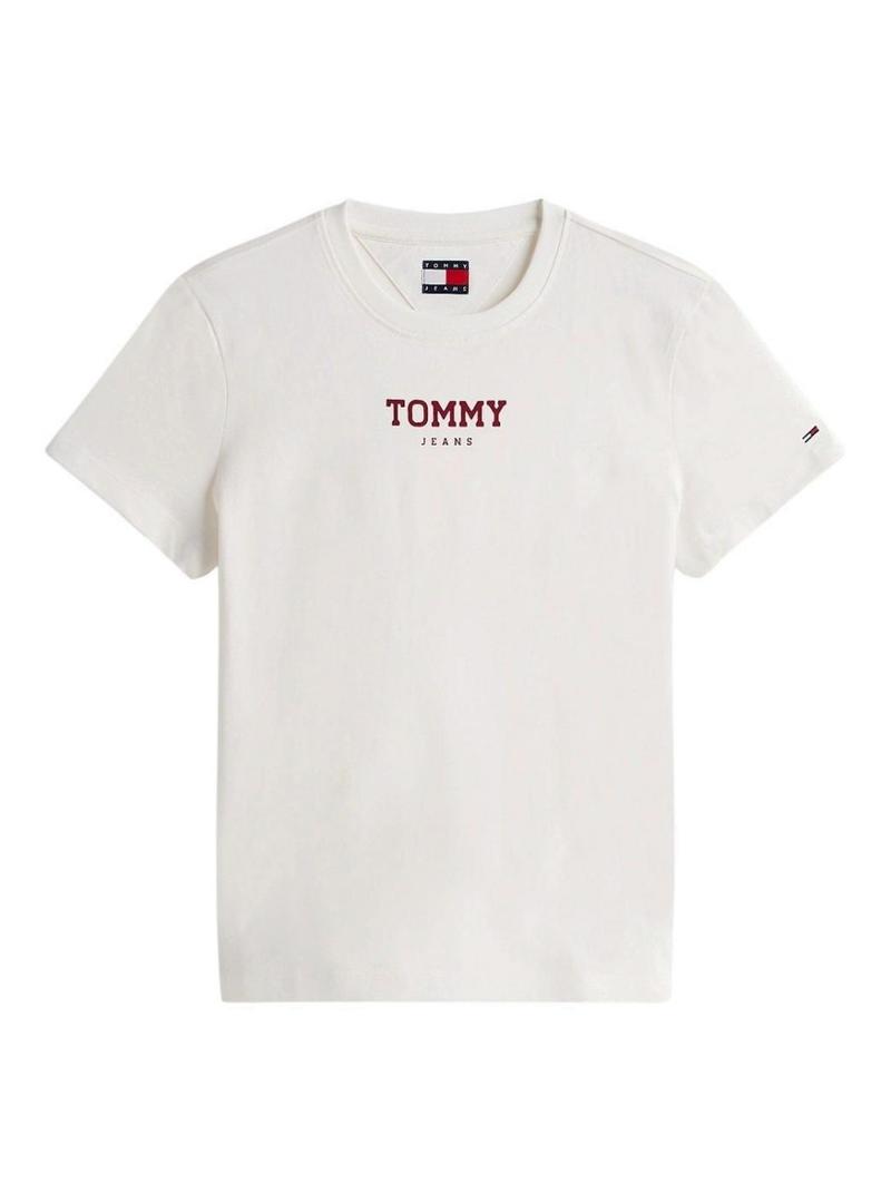 Camiseta Tommy Jeans Essential Logo branca para mulher.