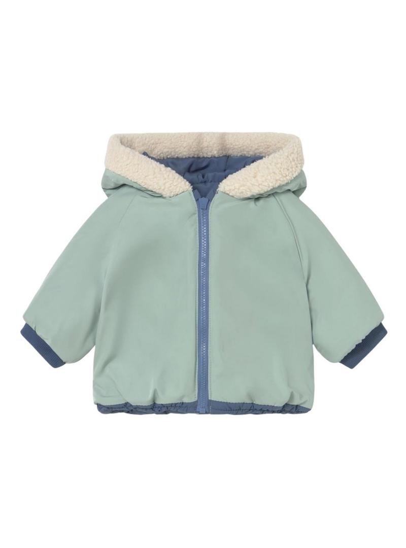 Jaqueta reversível Mayoral. Para recém-nascido. Capuz com detalhe de pelo. Fecho frontal com zíper. Exterior com efeito acolchoado. Forro interno suave de poliéster. Serigrafia na parte de trás. Bolso frontal. Mangas com acabamento canelado. Reversível: design liso e serigrafia nas costas.