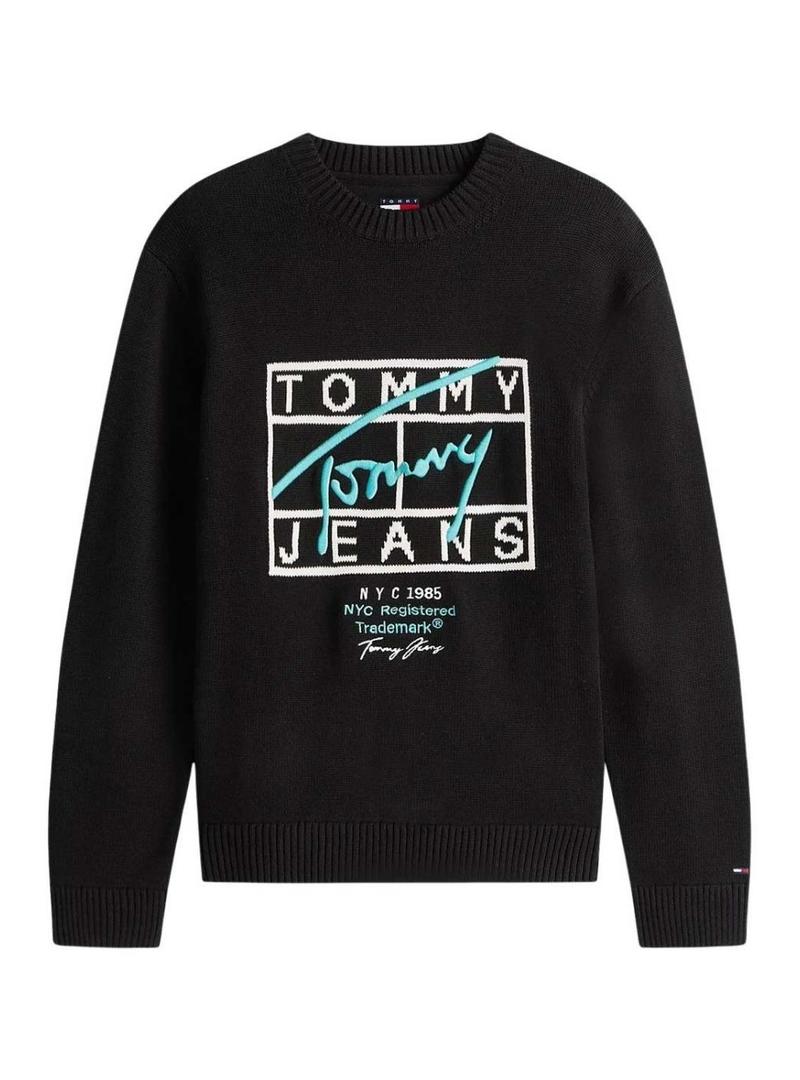 Camisola Tommy Jeans com logotipo preto de intarsia para homem.