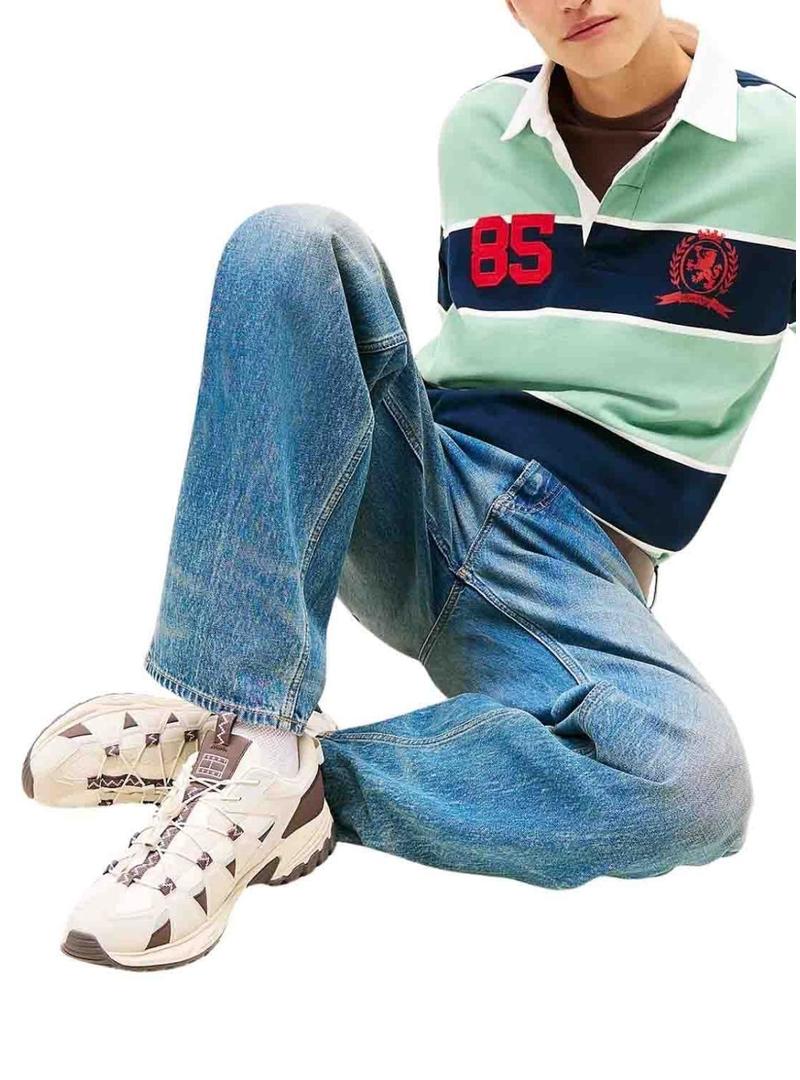 Sapatilhas Tommy Jeans Outdoor runner bege e cinza para homem.