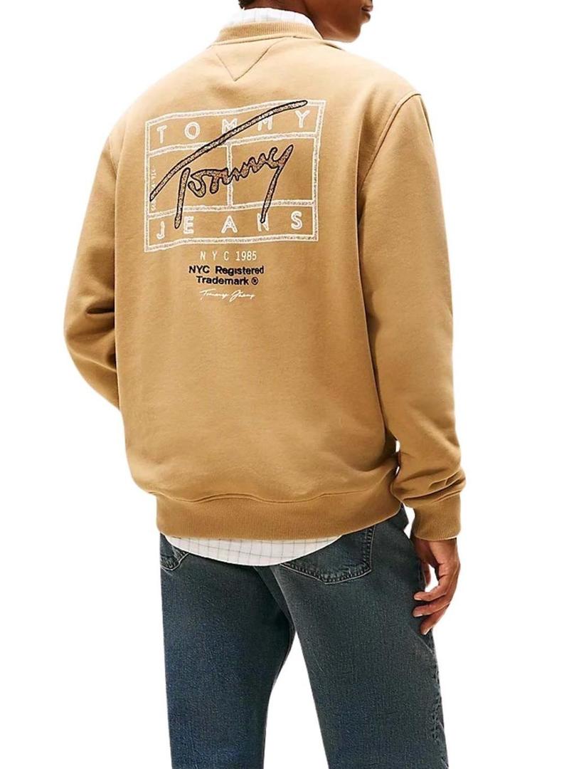 Moletom Tommy Jeans Sing Spray camelo para homem.