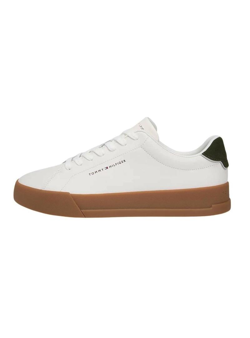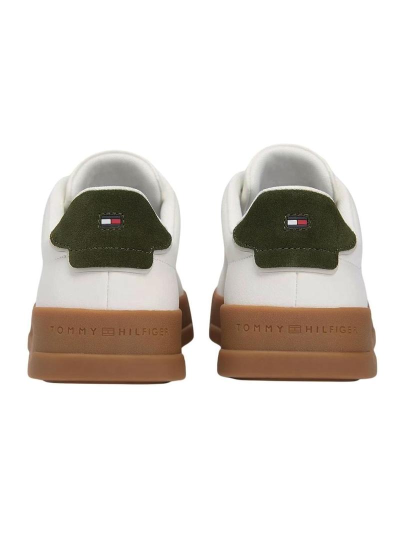 Tênis Tommy Hilfiger Court branco e verde para homem.