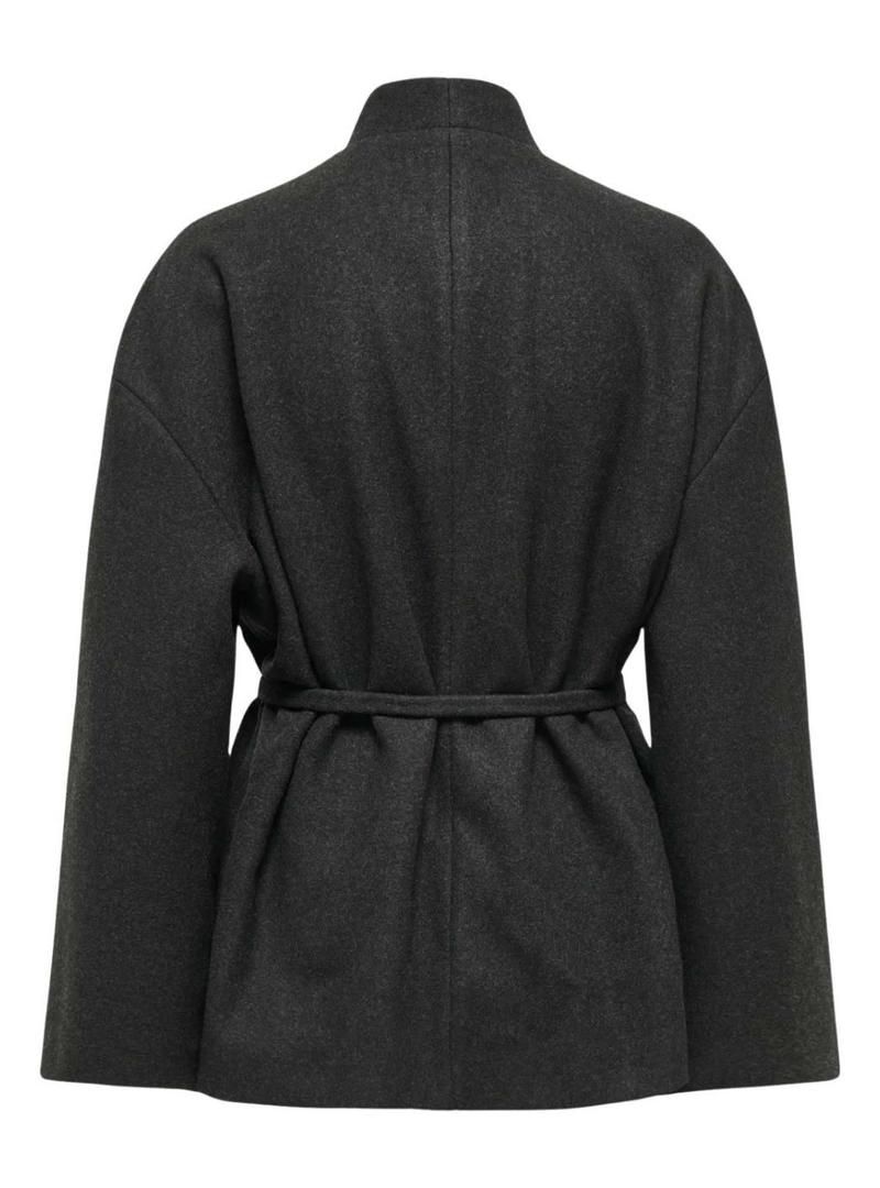 Kimono Only. Modelo Fox. Cor cinza escuro. Casaco estilo oriental. Cinto autotie a condizer. Sem lapelas. Ombros caídos. Ajuste folgado.