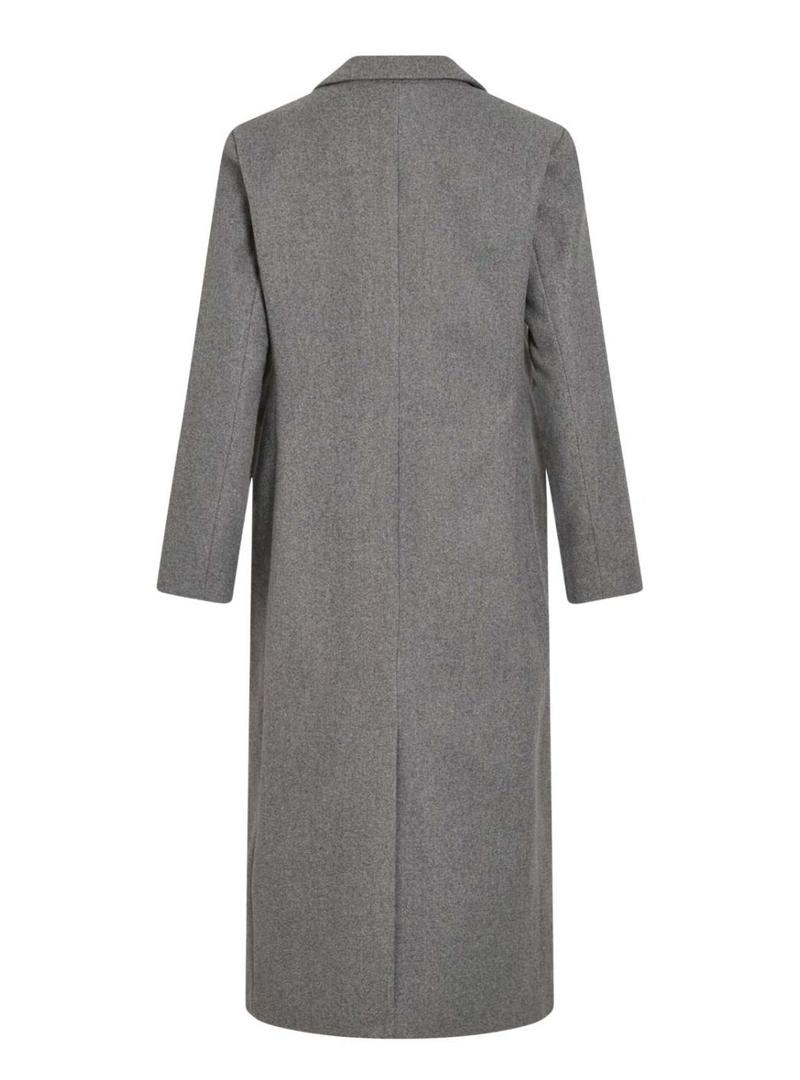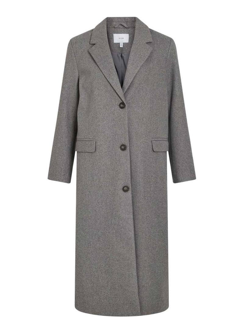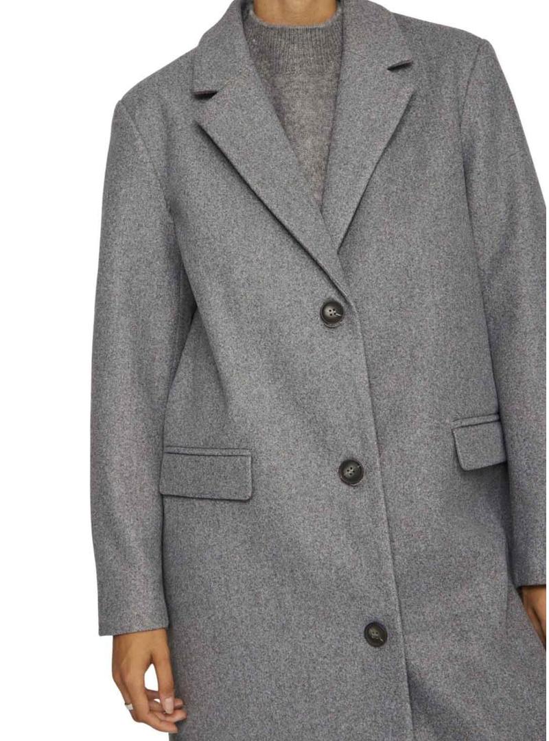 Casaco Vila. Modelo Visolo. Cor cinza. Corte reto. Fechamento com três botões. Bolsos laterais com aba. Ajuste regular.