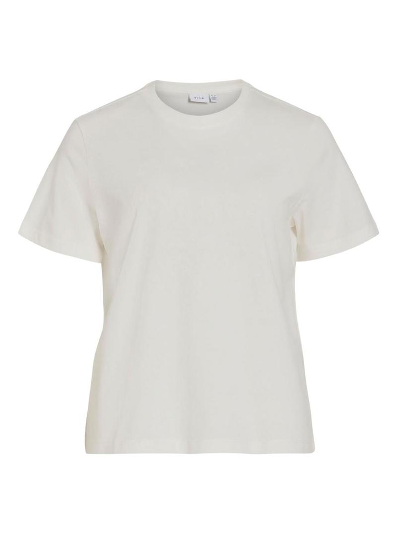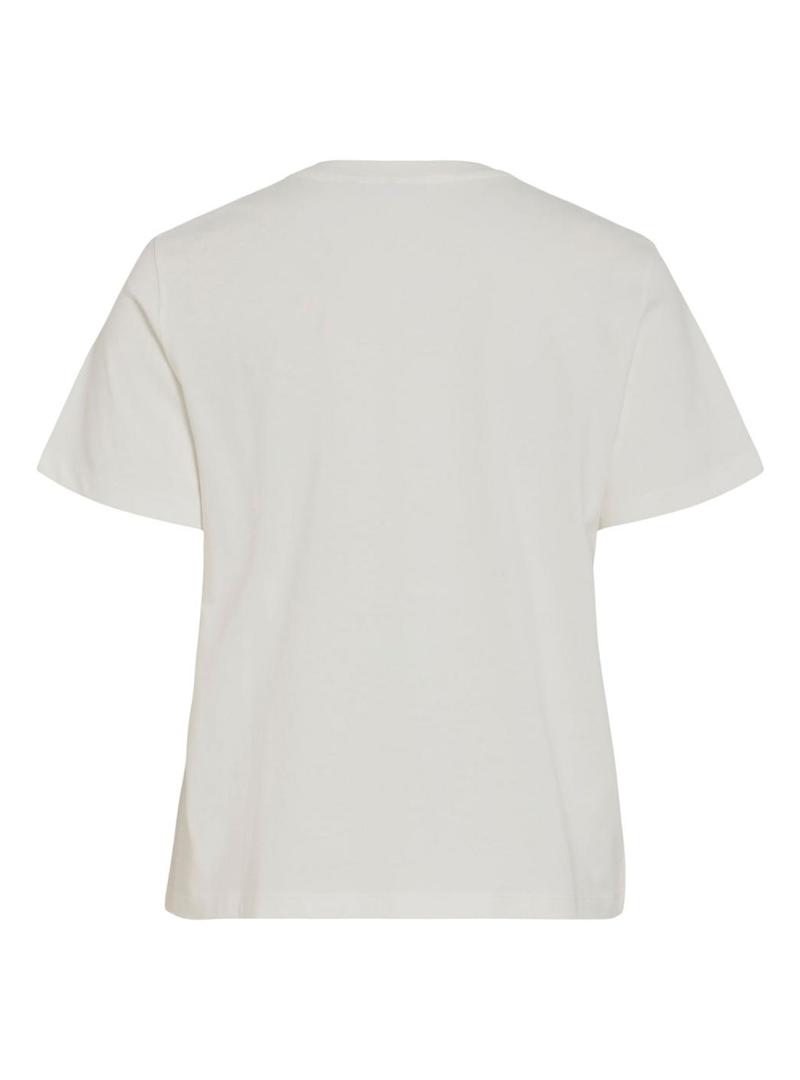 Camiseta Vila. Modelo Visybilla Rose. Cor branca. Estilo básico. Estampa de rosas no tom da frente. Gola redonda. Manga curta. Ajuste reto.
