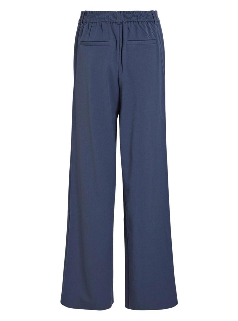 Calça Vila. Modelo Vivarone. Cor azul. Cintura elástica. Cintura alta. Perna larga. Bolsos laterais. Bolsos traseiros com vivo. Ajuste regular. Tecido elástico.