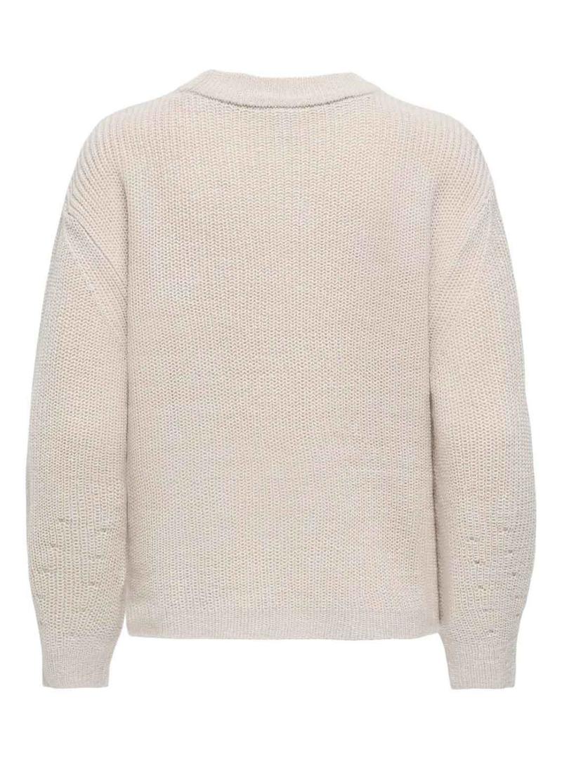 Camisola Only. Modelo Milouz. Cor bege. Gola redonda. Manga comprida. Ajuste reto. Tecido de malha grosso em relevo. Ombros caídos. Estilo básico.