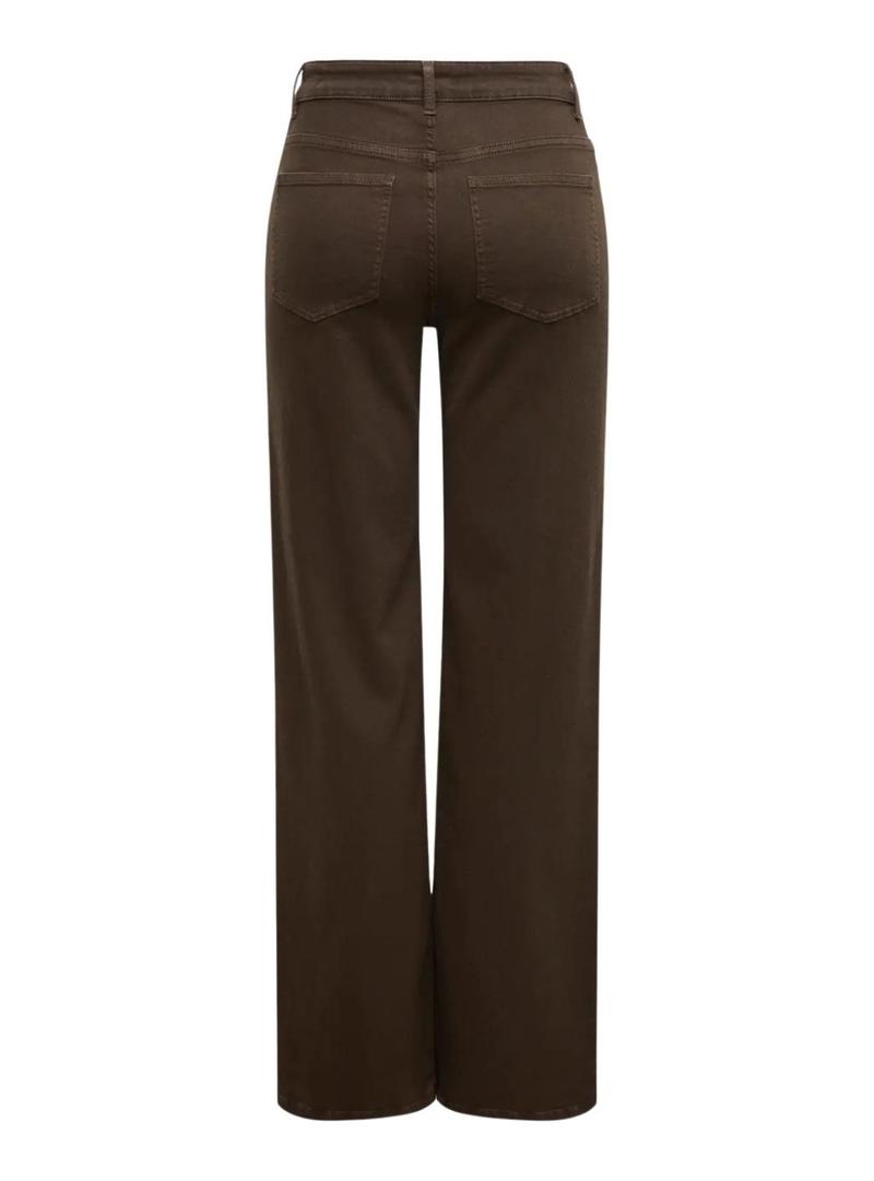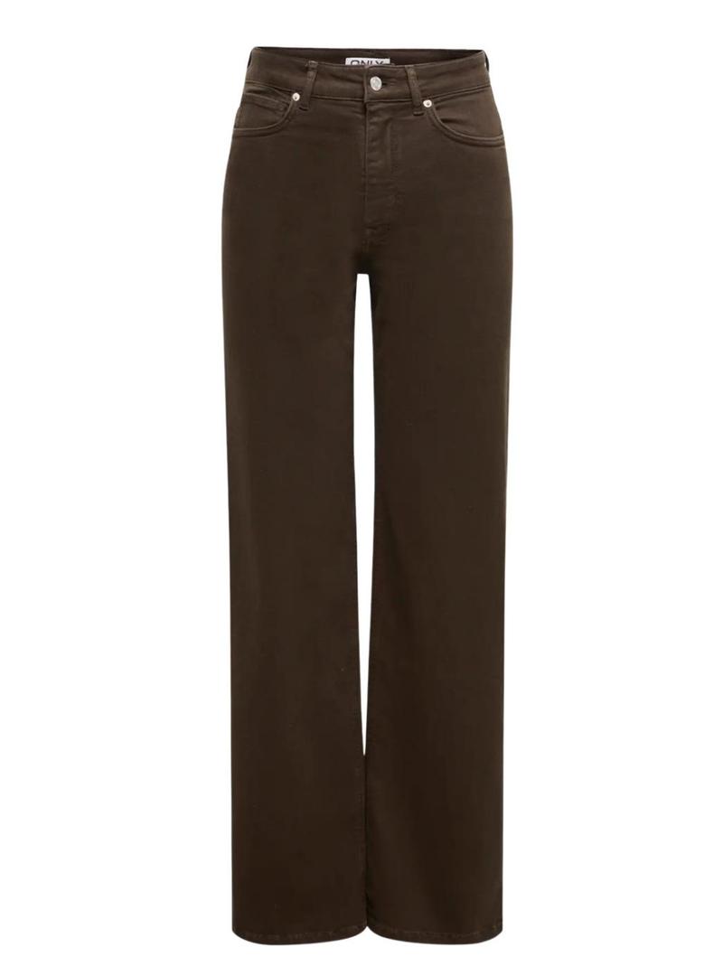 Calça de ganga Only. Modelo Madison. Cor marrom. Cintura alta. Fecho de botão e zíper. Perna larga. Cintura alta. Tecido elástico. Cinco bolsos. Estilo básico.