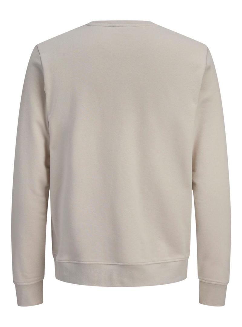 Moletom Jack and Jones. Modelo Devin. Cor bege. Gola redonda. Manga comprida. Extremidades caneladas. Ajuste regular. Logotipo estampado no peito em laranja. Efeito desgastado no logotipo.