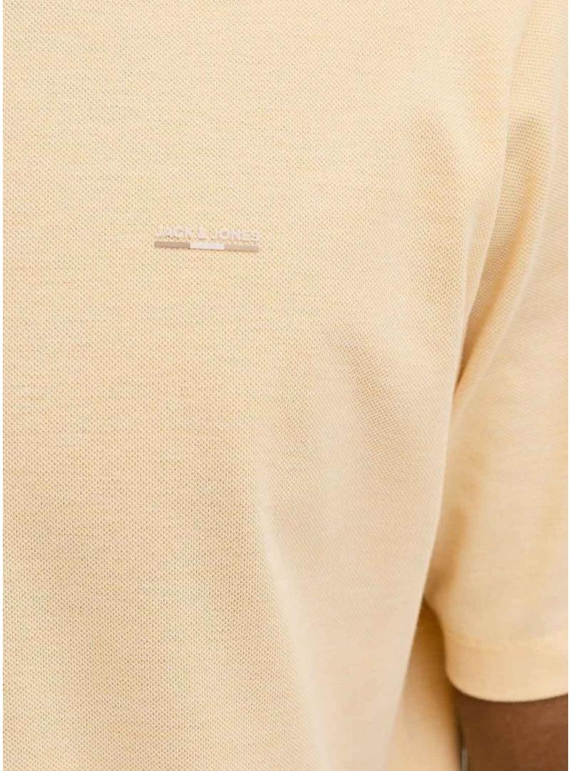 Camiseta Jack and Jones. Modelo Blualves. Cor amarelo manteiga. Gola redonda. Manga curta. Ajuste regular. Tecido de piqué de algodão fino. Logotipo discreto no peito.