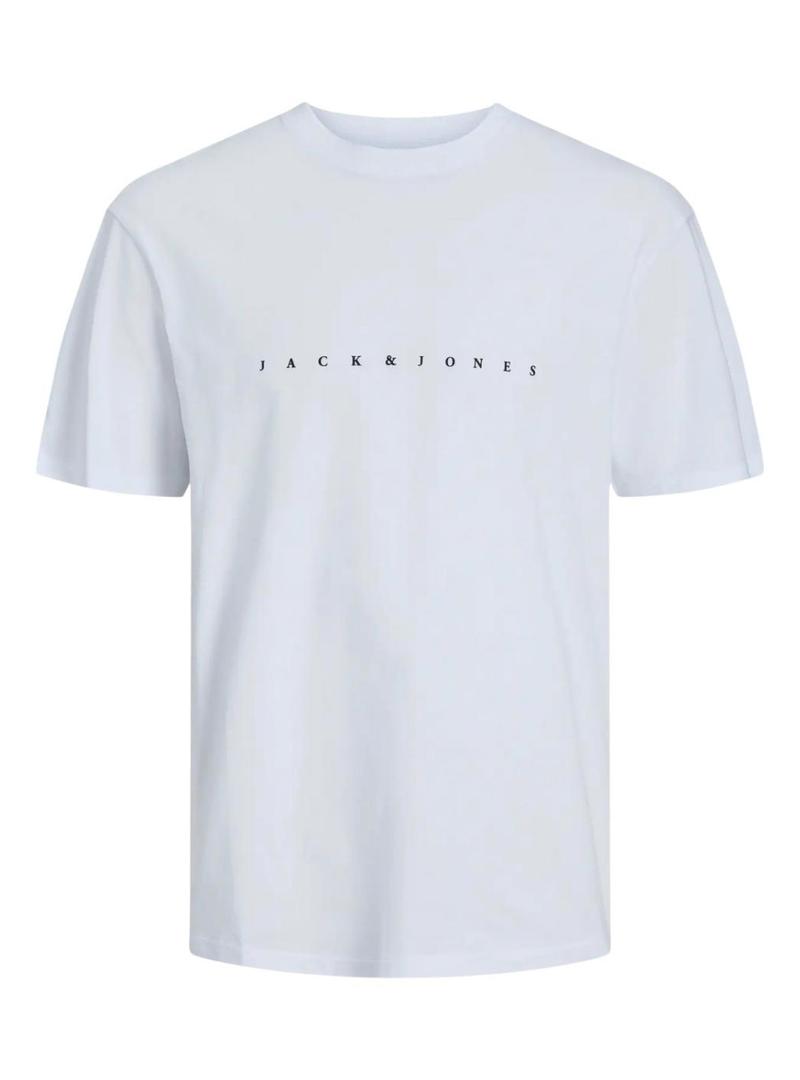 Camiseta Jack and Jones. Modelo Star. Cor branca. Gola redonda. Manga curta. Ajuste folgado. Logotipo minimalista estampado no peito.