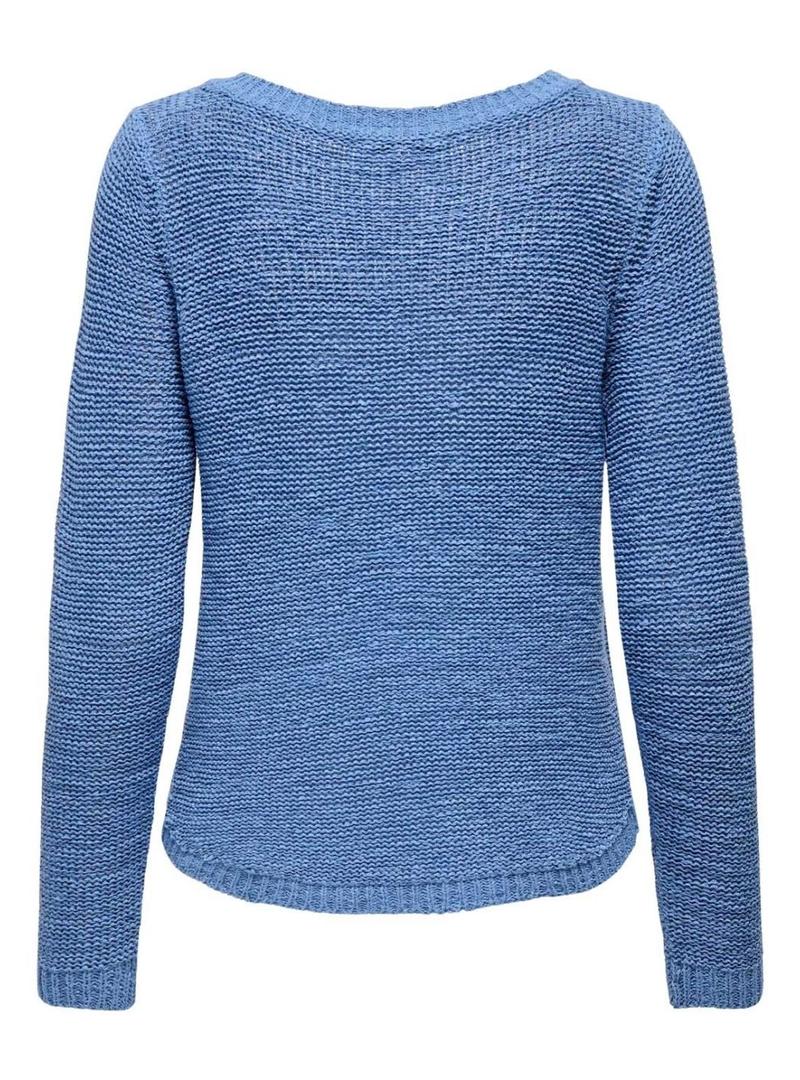 Camisola Only. Modelo Geena. Cor azul. Decote redondo amplo. Manga comprida. Extremidades caneladas. Ajuste regular. Tecido de malha plana.