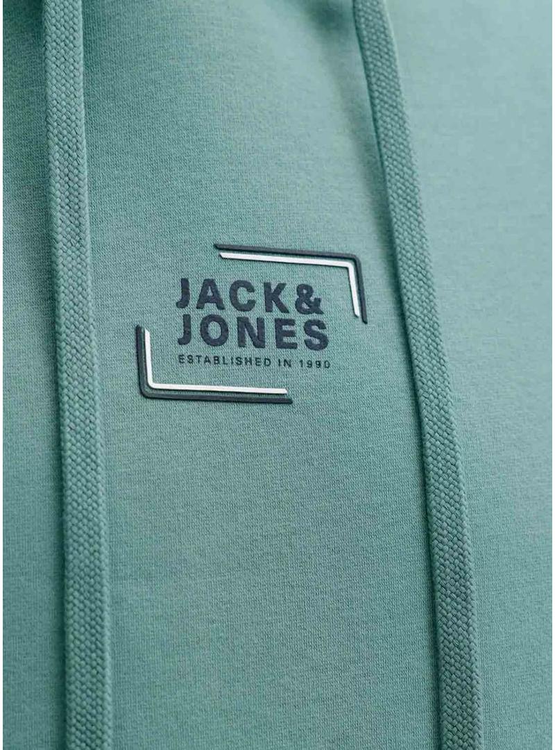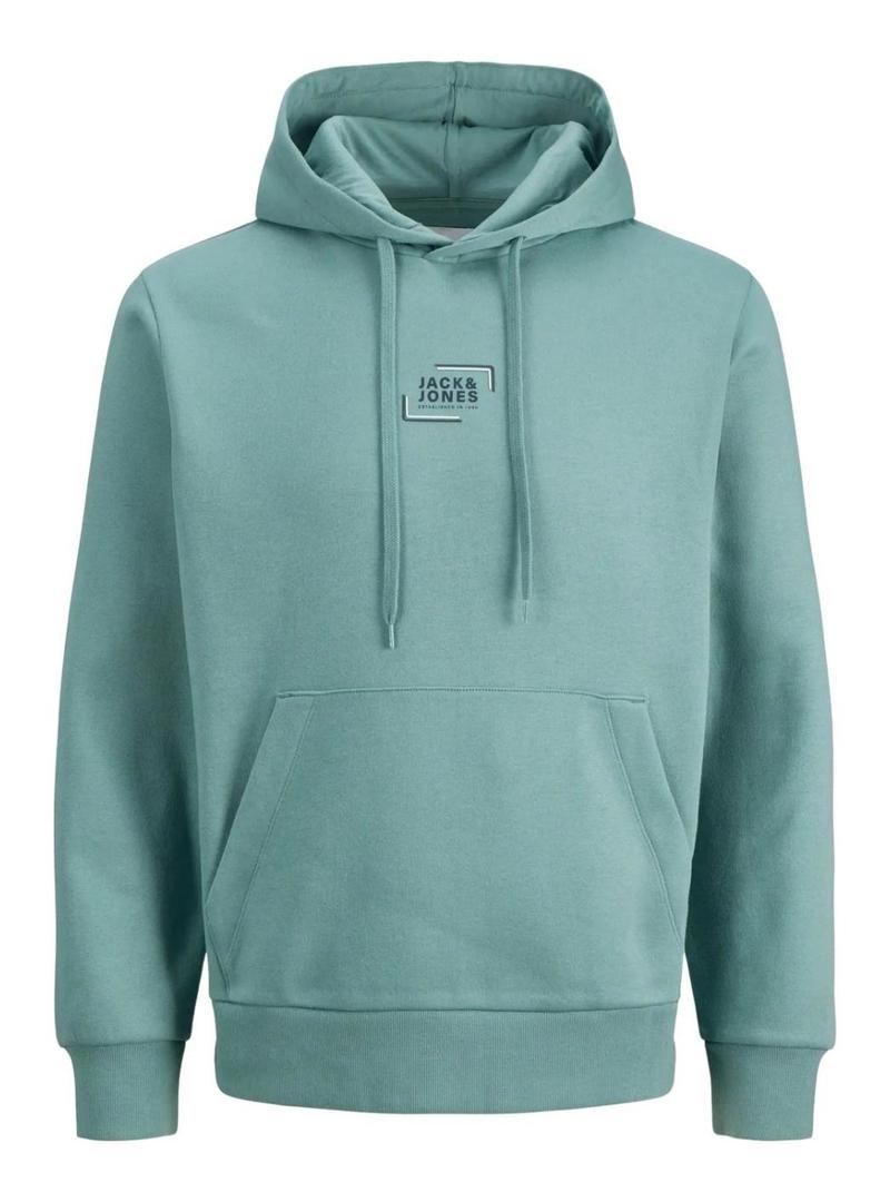 Moletom Jack and Jones. Modelo Corp. Cor turquesa. Capuz com cordão ajustável. Extremidades caneladas. Ajuste regular. Logo estampado no peito. Bolso canguru.