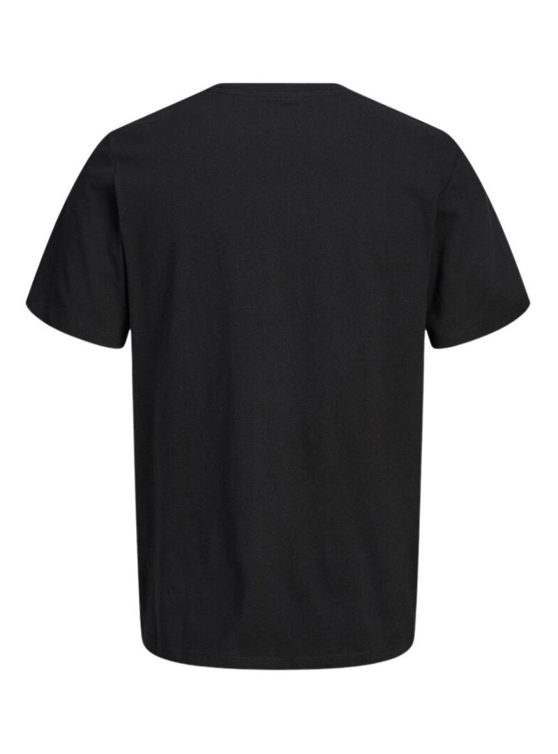 Camiseta Jack and Jones. Modelo Rain. Cor preta. Gola redonda. Manga curta. Ajuste regular. Logotipo estampado no peito em forma de caixa.