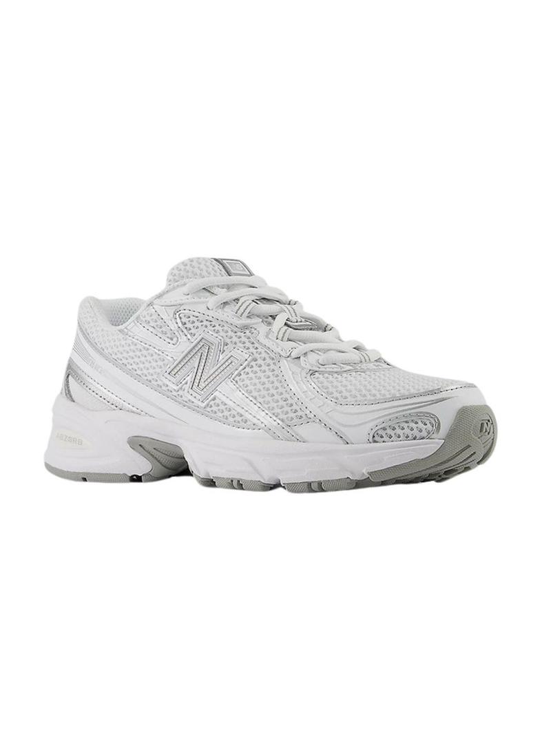Sapatilhas New Balance GR740 branco e prata para mulher.