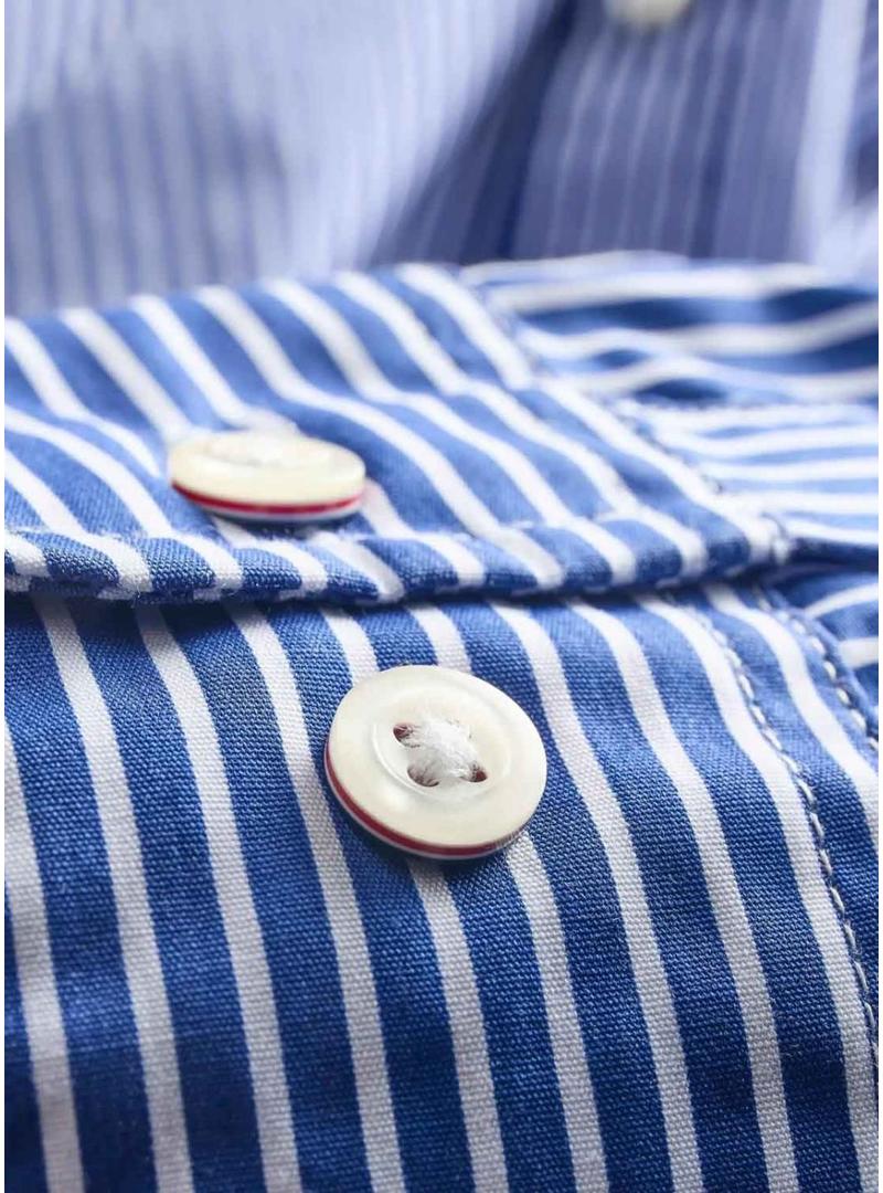 Camisa Jack and Jones. Modelo Matheo. Cor azul Klein e branco. Tecido com listras verticais. Fecho com botões nacarados. Ajuste regular.