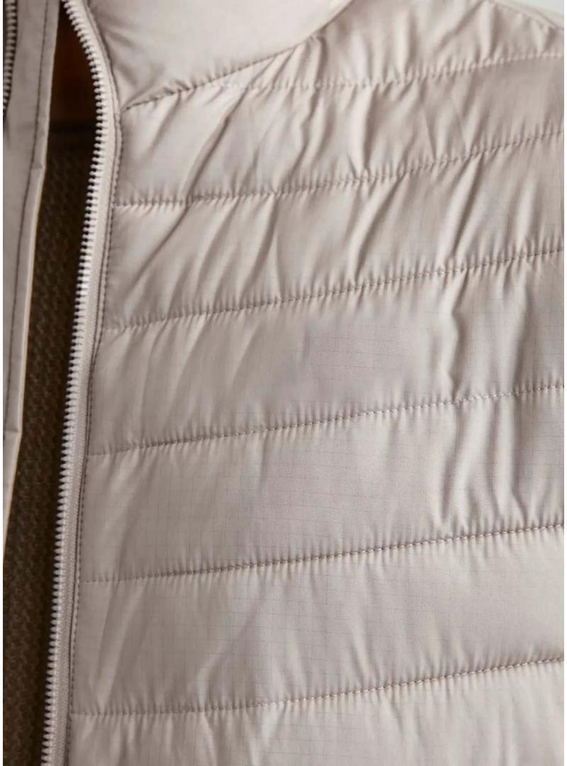 Jaqueta acolchoada Jack and Jones. Modelo Estate. Cor branco quebrado. Tecido acolchoado leve. Fecho com zíper. Gola alta. Bolsos laterais. Peça dobrável.