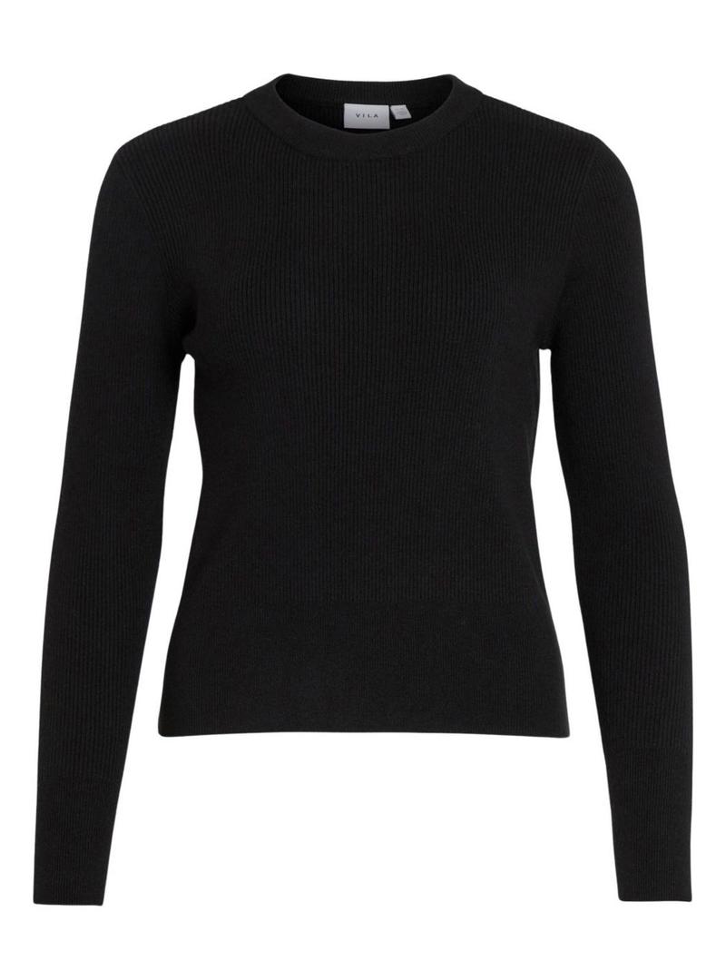 Camisola Vila. Cor preta. Modelo Vicomfy. Em malha canelada. Gola redonda. Malha macia e elástica. Corte regular. A modelo veste o tamanho S.