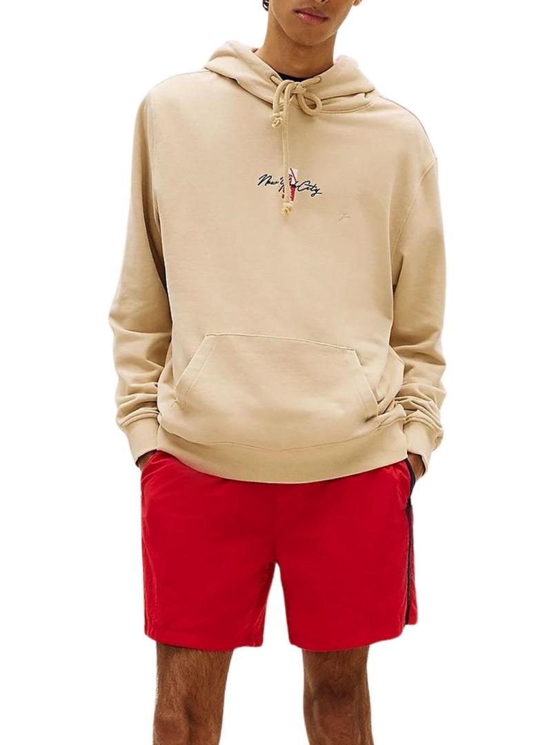 Moletom Tommy Jeans Backprint bege para homem.